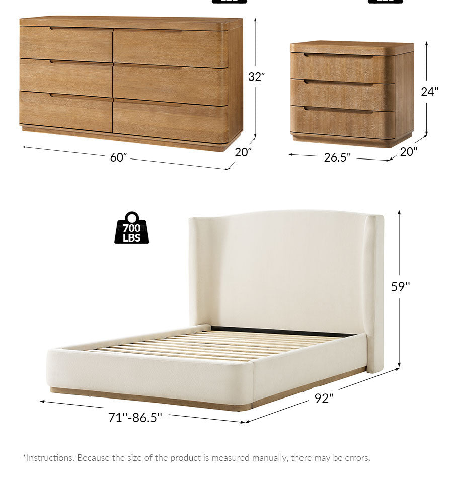 Dresser Size:60"W x 20"D x 32"H Instructions:Because the size of the product is measured manually, there may be errors.