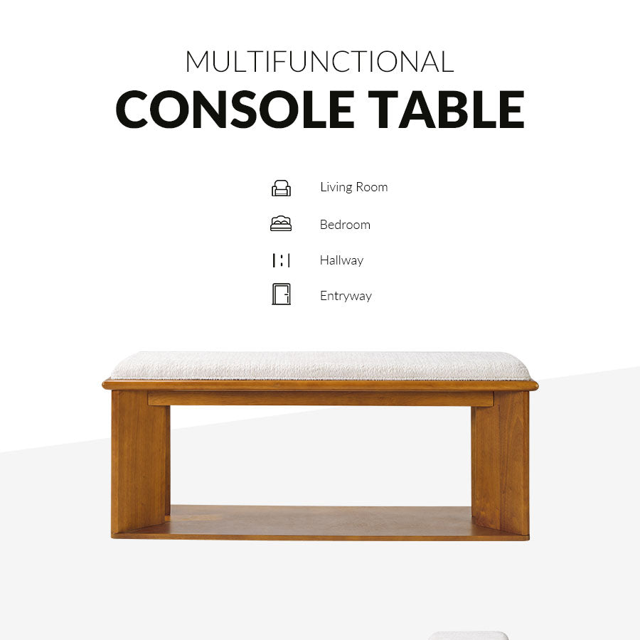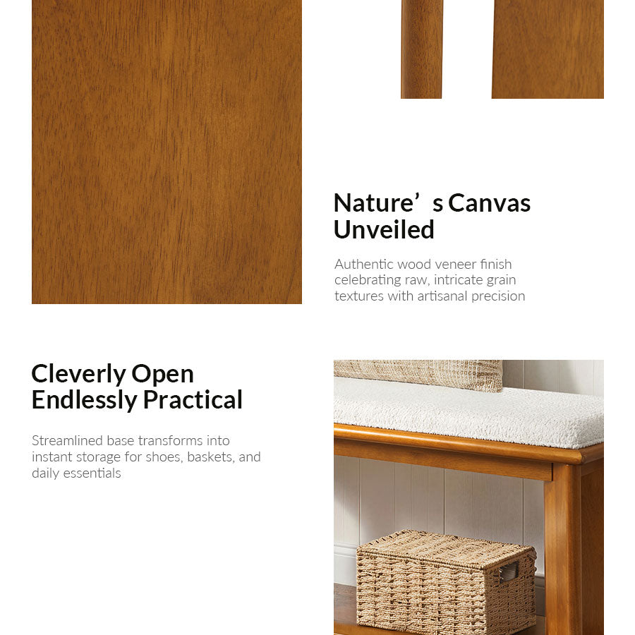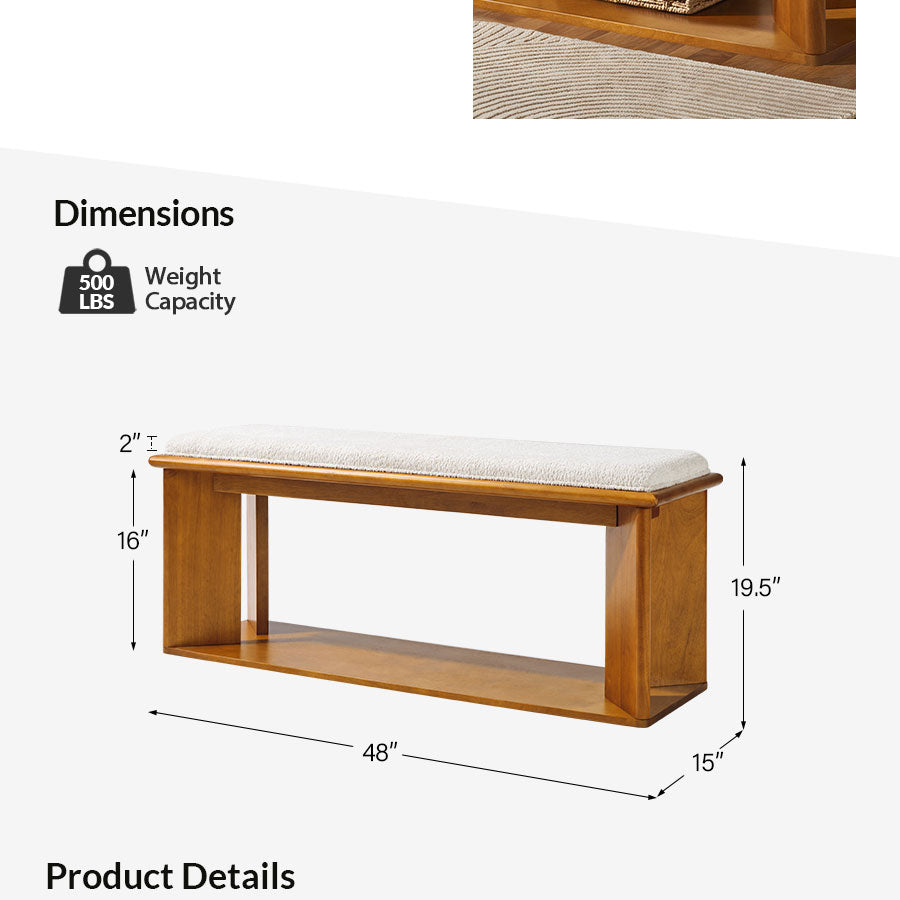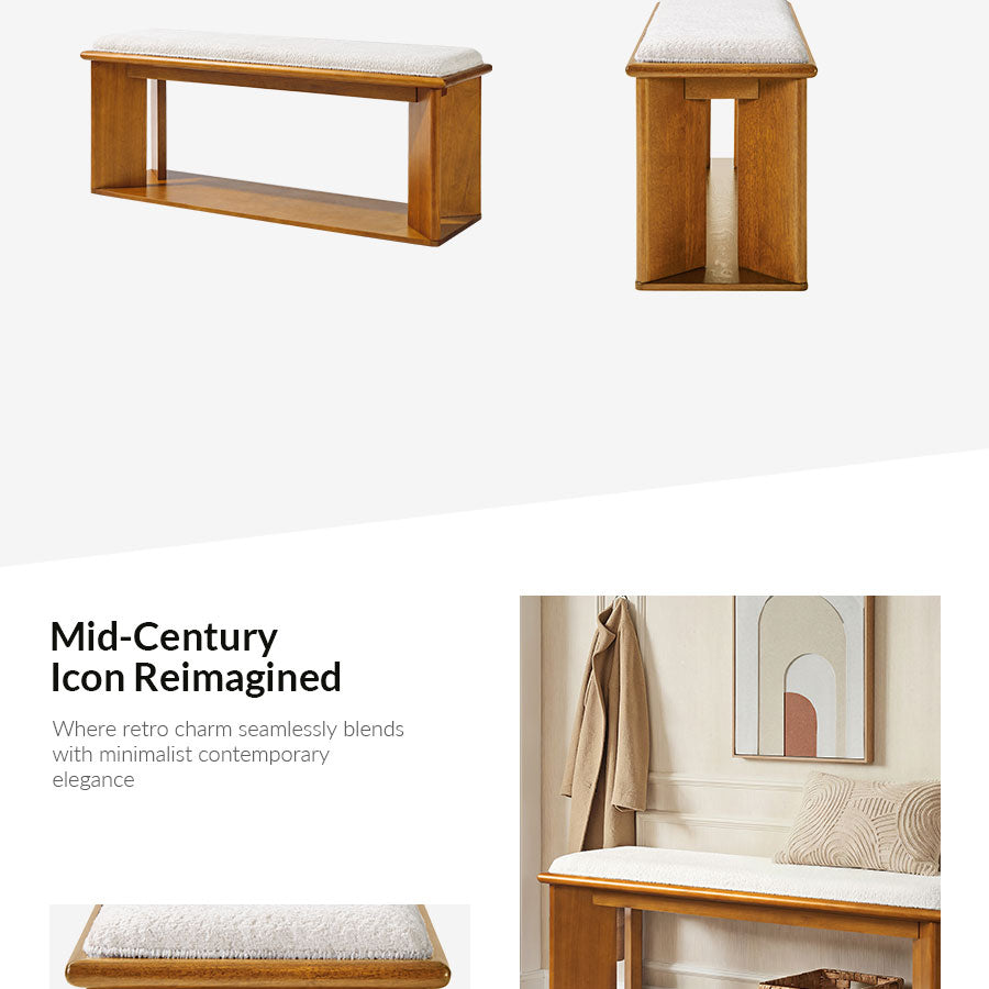 Mid-Century Modern Wood Bench with Open Shoe Storage Shelf