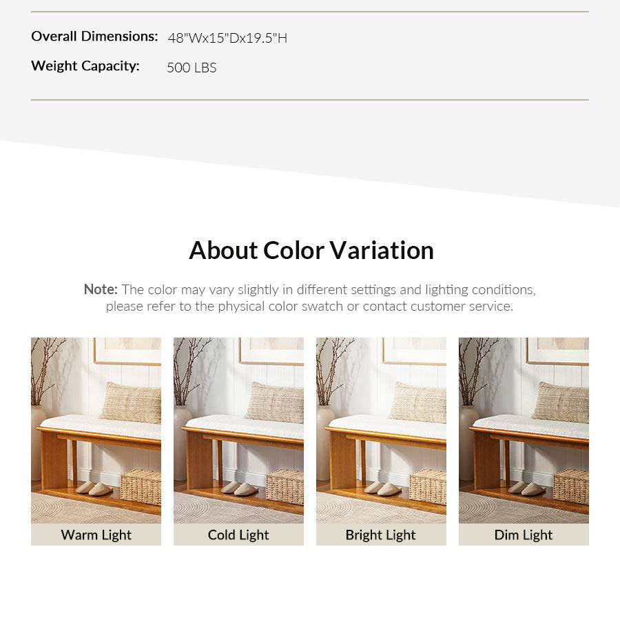 -Product Including: one bench, assembly is required. -Mid-Century Modern Elegance: Features clean, iconic lines inspired by mid-20th century design for timeless sophistication. -Sculpted V-Base with Fluid Lines: Tapered V-shaped legs and softly rounded edges create a harmonious, modern silhouette. -Cloud-Like Chenille Comfort: Plush chenille upholstery delivers exceptional softness and skin-friendly coziness. -Natural Wood Veneer Finish: Real wood veneer surface showcases intricate grain patterns for organic warmth and texture. -Open-Bottom Storage: Versatile under-bench space organizes shoes, baskets, or décor without cluttering your floor.