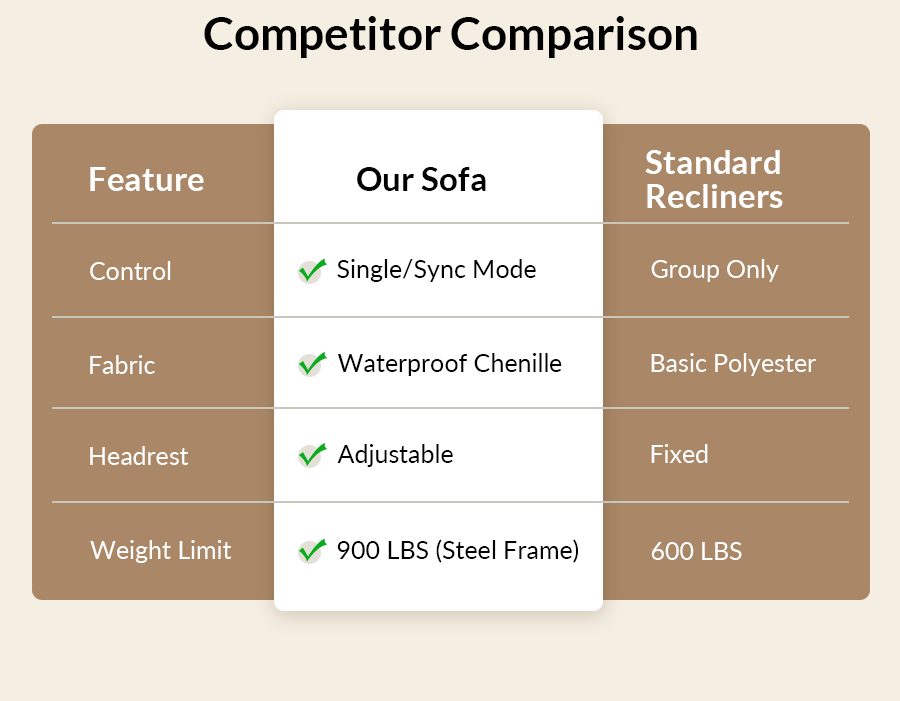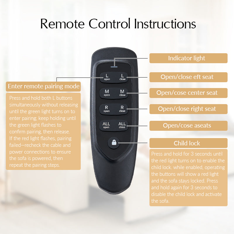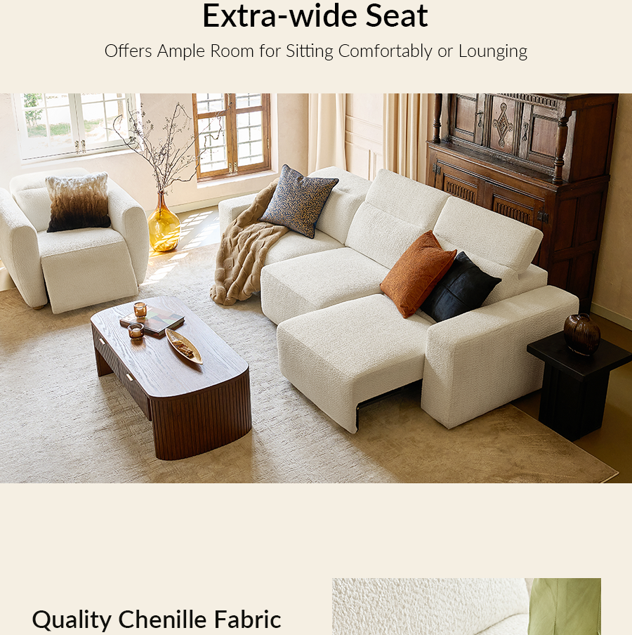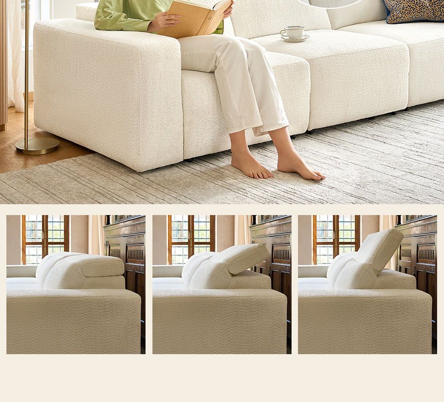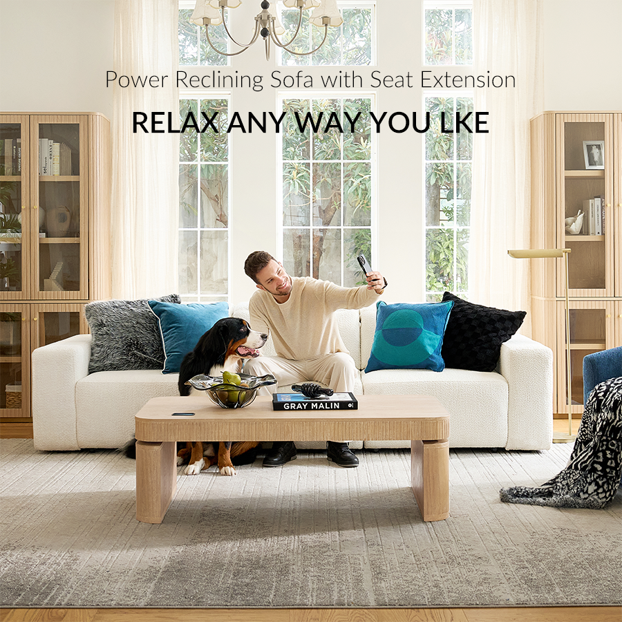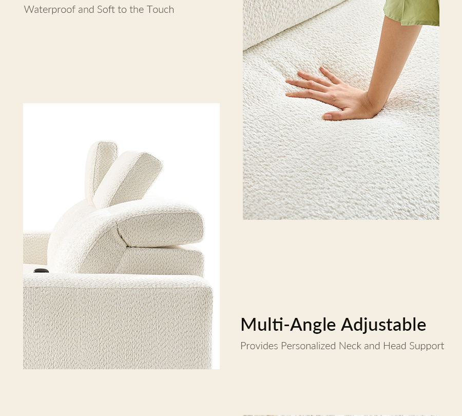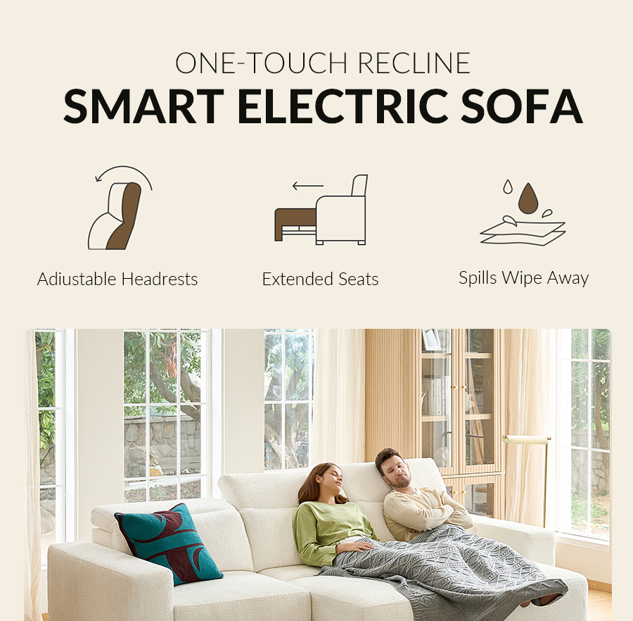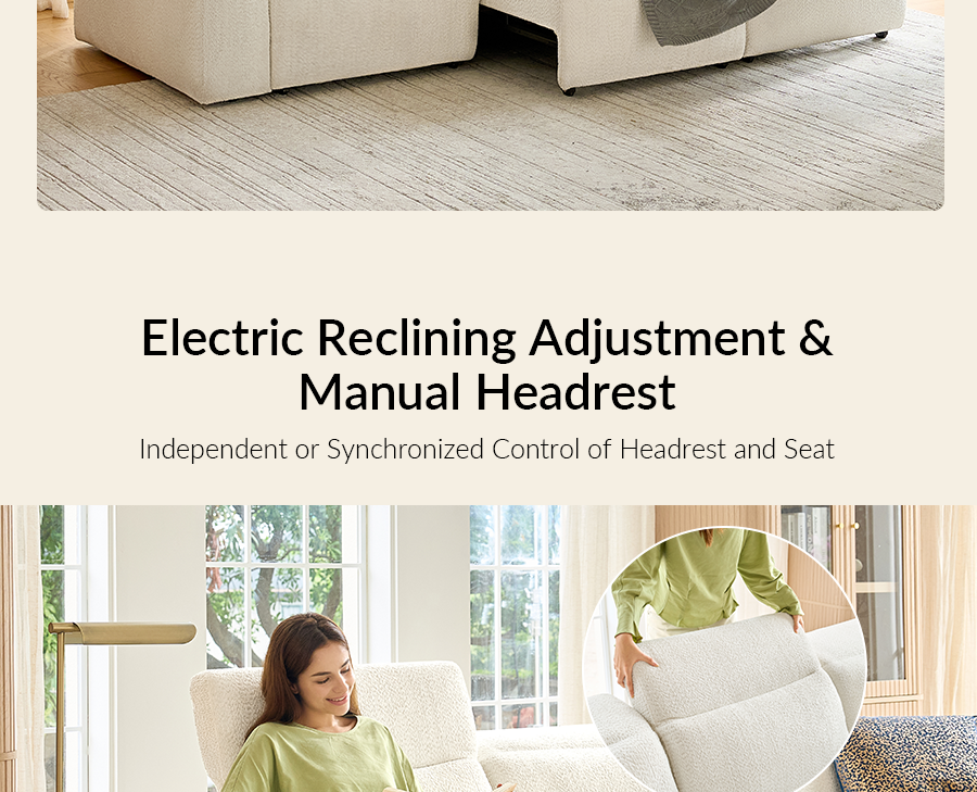 Each of the three seats is equipped with independent electric reclining control, allowing every user to fully stretch out and relax. The manual adjustable headrests offer personalized neck support, while the electric telescoping mechanism lets you extend the seat depth effortlessly for deeper comfort.