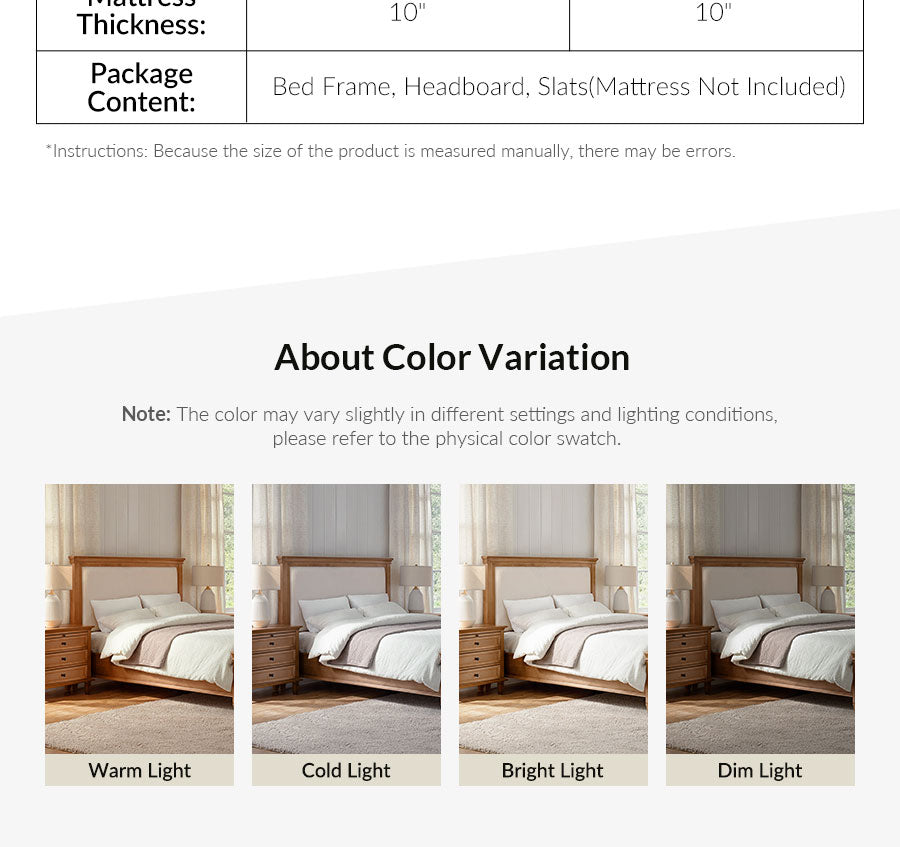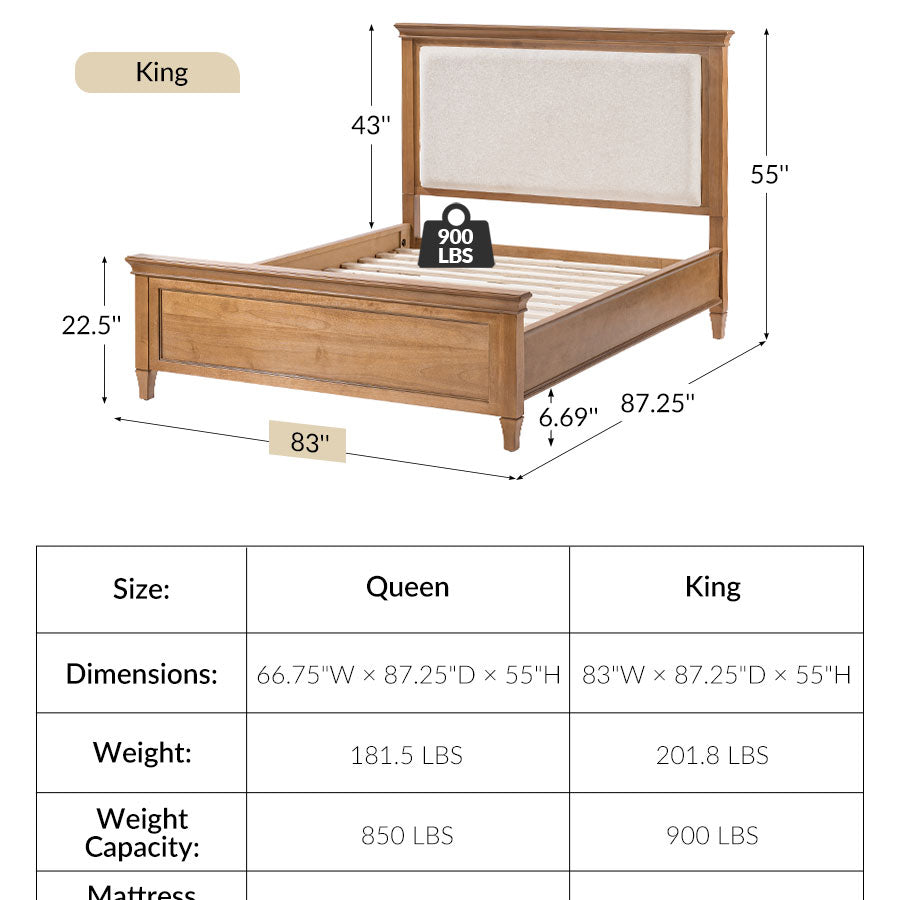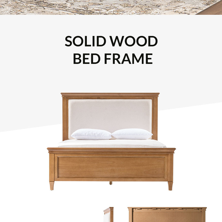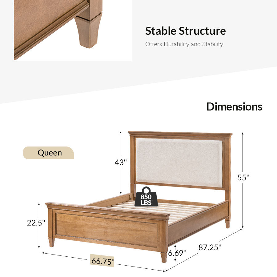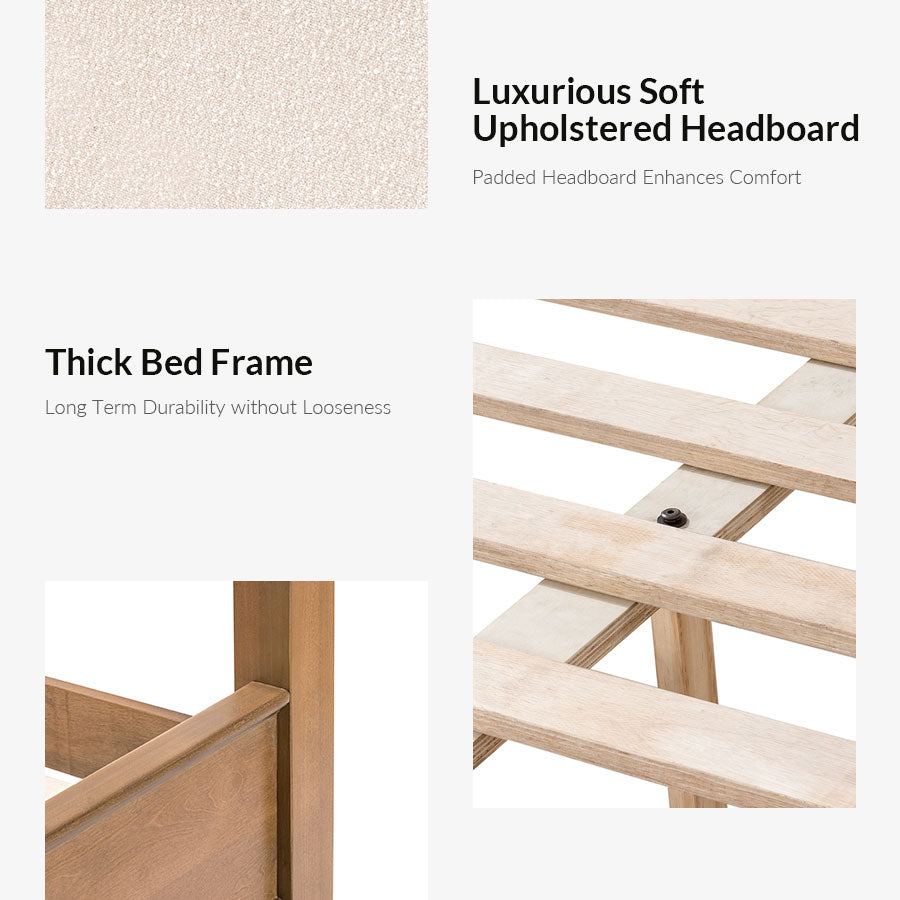 • Stylish Contrast Color DetailA thoughtfully designed contrast between the upholstered headboard and the solid wood frame enhances visual appeal. This subtle two-tone look adds depth and sophistication without overpowering your space.