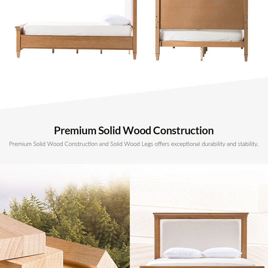 • Durable Solid Wood FrameCrafted from high-quality solid wood, the bed frame provides exceptional strength, stability, and long-lasting performance. The sturdy construction ensures reliable support for years of everyday use.