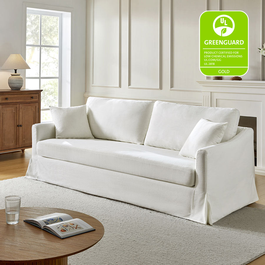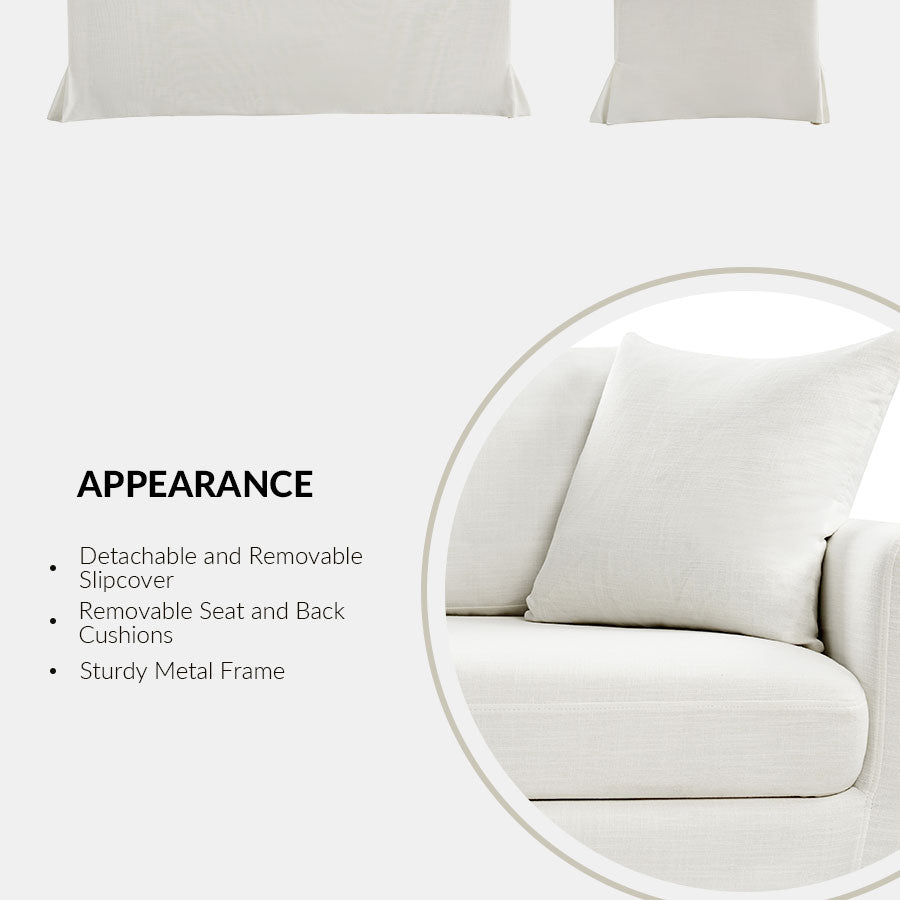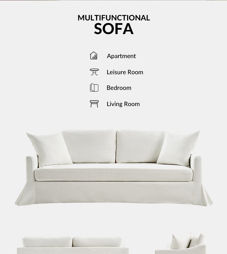 Introducing the versatile, easy-to-maintain sofa that effortlessly adapts to Traditional, Transitional, Glam, Coastal, Rustic, Lodge, Farmhouse, Bohomina, and more. Enjoy quick assembly, reversible cushions, and an easy, one-piece slipcover extending to the bottom. It's a breeze to put on and take off.