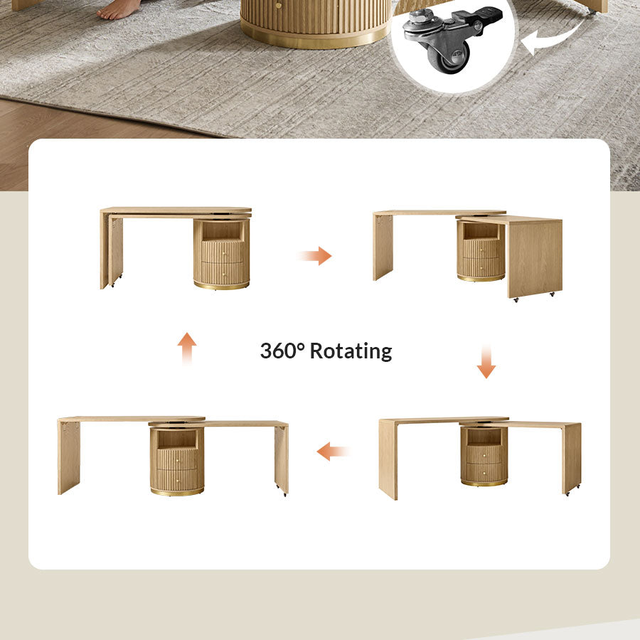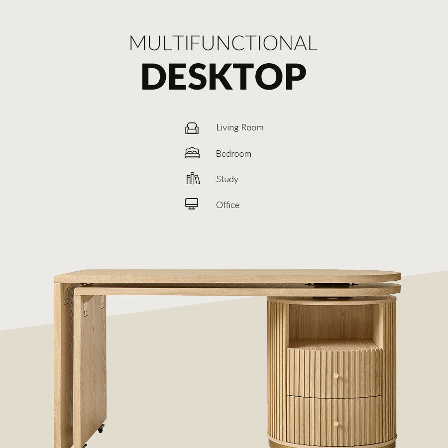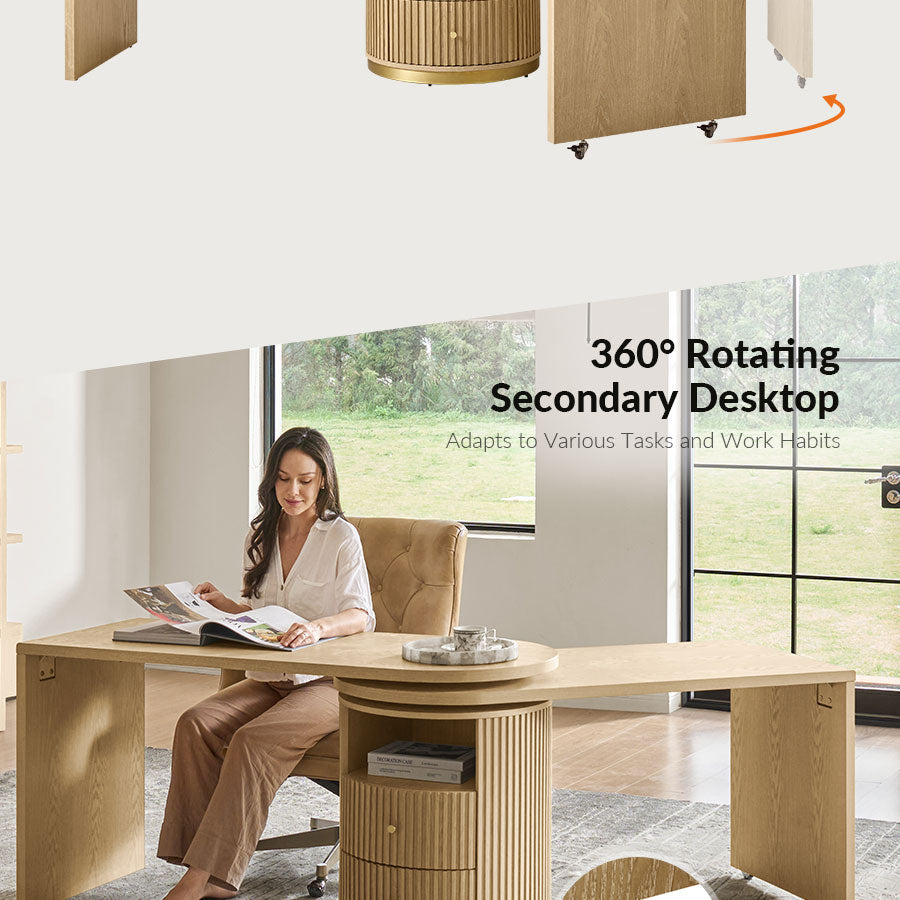 Ideal for small rooms, compact apartments, or multifunctional spaces, this desk features a foldable, space-saving design that reduces the footprint when not in use. The central rotating module combines open shelving with hidden storage drawers, offering ample space for office supplies, documents, and daily essentials while keeping your workspace clean, organized, and clutter-free.