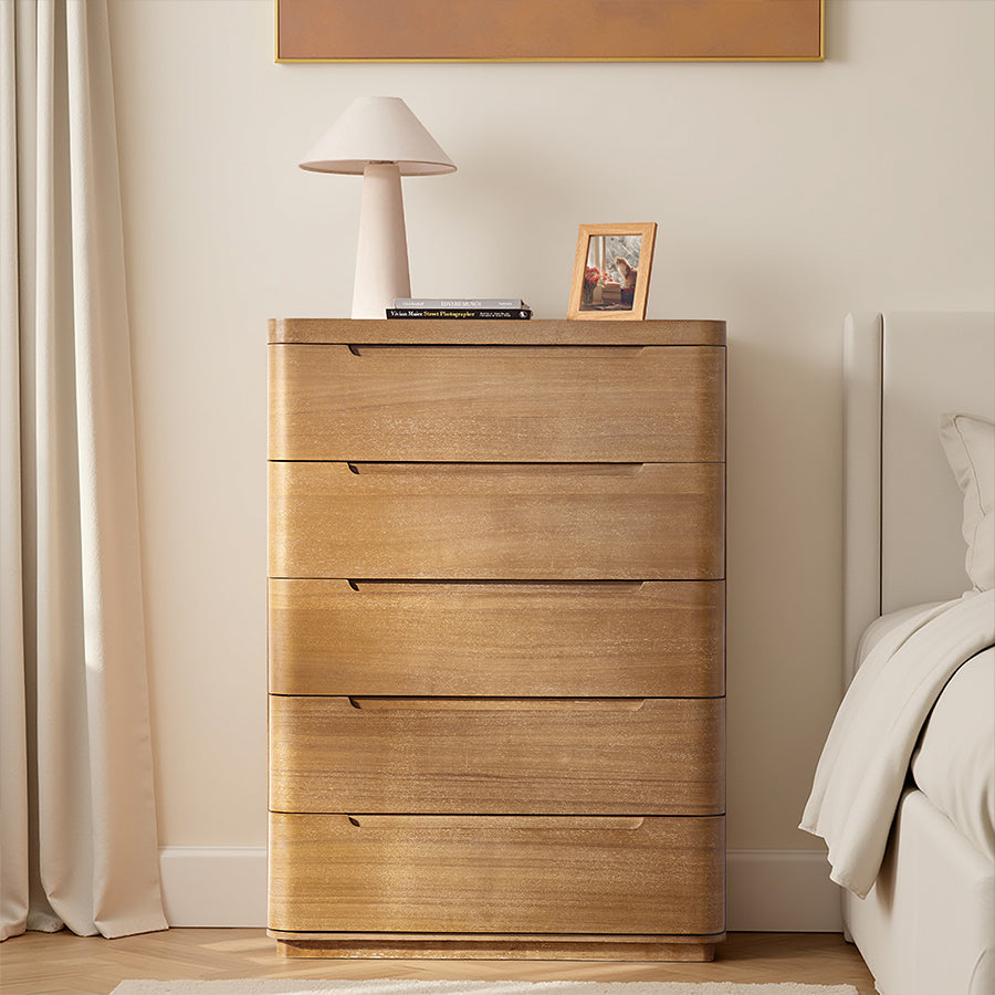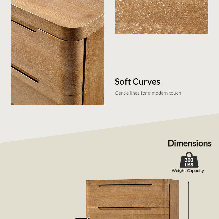 Bring refined modern elegance and practical storage to your bedroom with this beautifully crafted 5-drawer chest. Designed with smooth, rounded edges, recessed wooden handles, and a clean minimalist silhouette, this dresser blends effortlessly with modern, Scandinavian, mid-century, and contemporary interiors.
