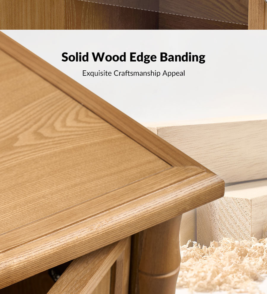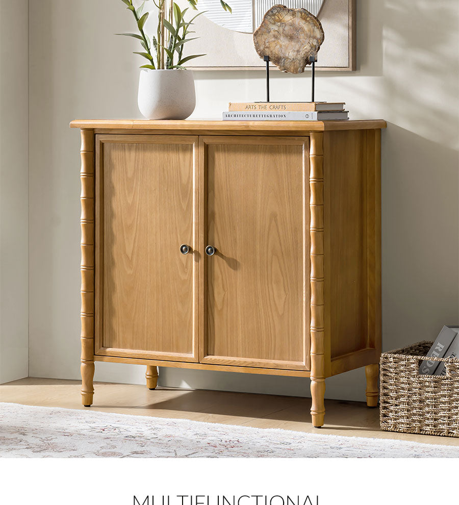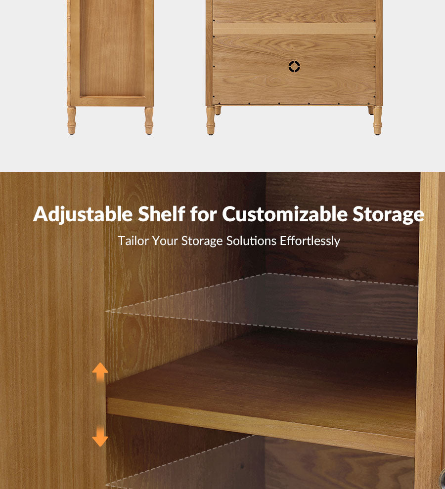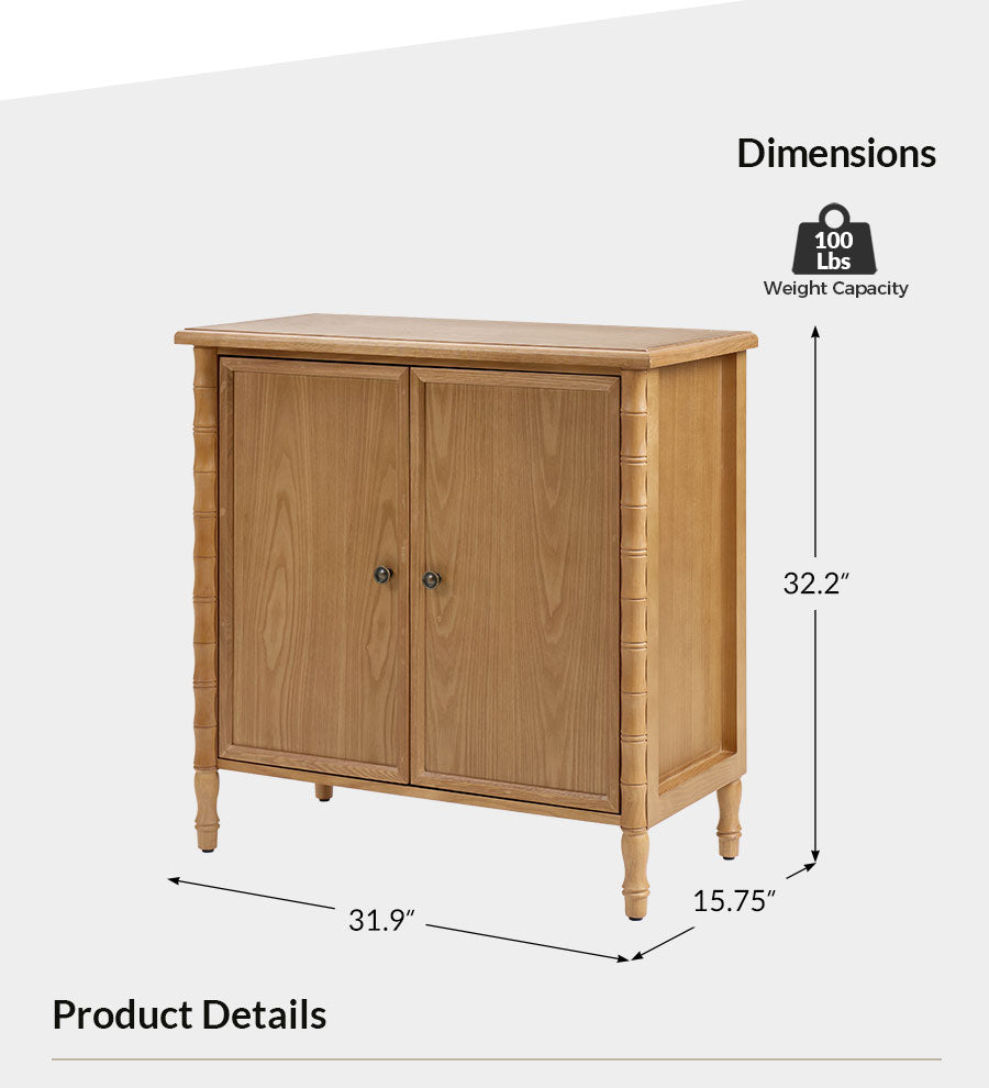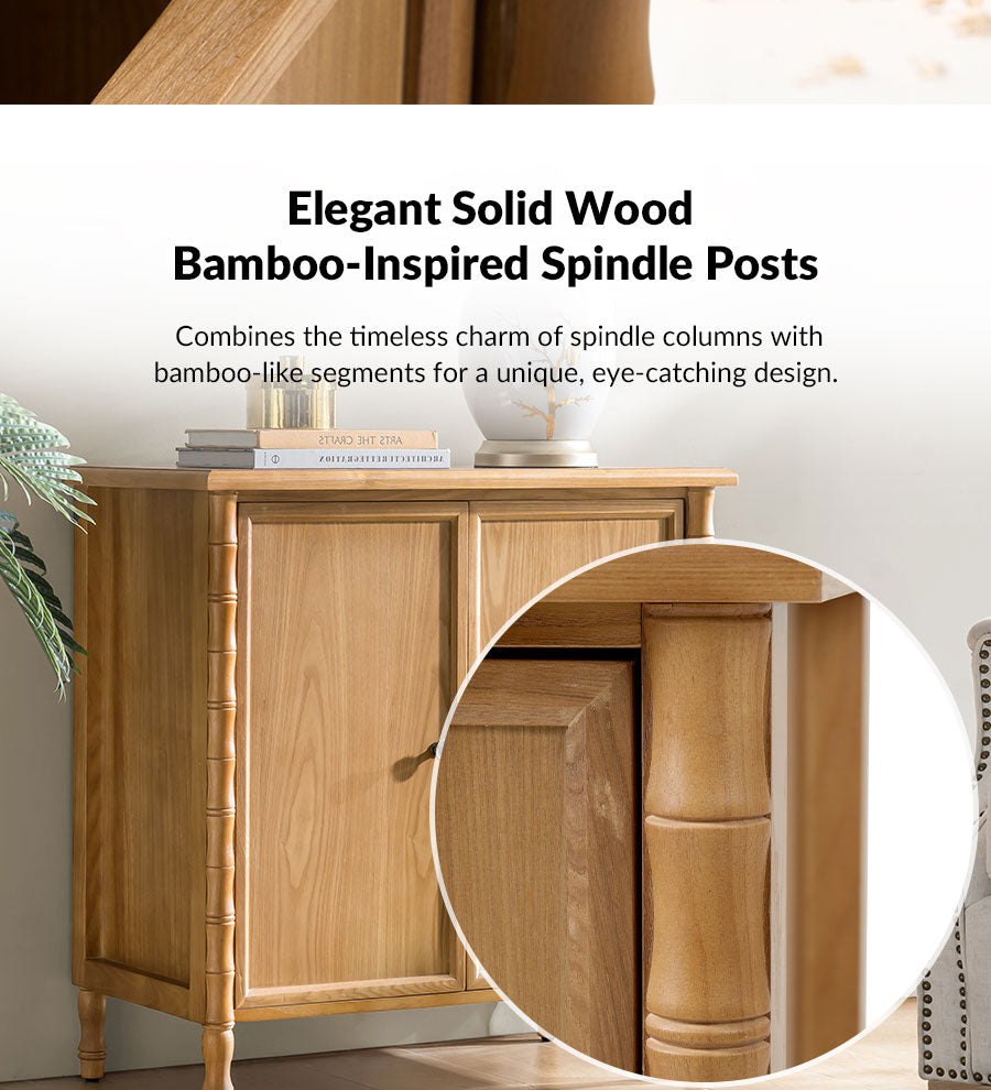 Add classic elegance and everyday function to your home with this transitional-style cabinet. Featuring a solid wood veneer finish, it highlights the natural beauty of wood grain while offering a warm, refined look. The cabinet stands on solid wood spindle legs, providing both timeless charm and sturdy support. Inside, adjustable shelves let you customize storage to fit everything from dinnerware to books or decorative items. An integrated cable management hole keeps cords neatly organized and out of sight, perfect for media devices or electronics. Blending traditional and modern design elements, this piece fits seamlessly into a variety of interiors. Its versatile style makes it perfect for use in living rooms, dining areas, entryways, or home offices.