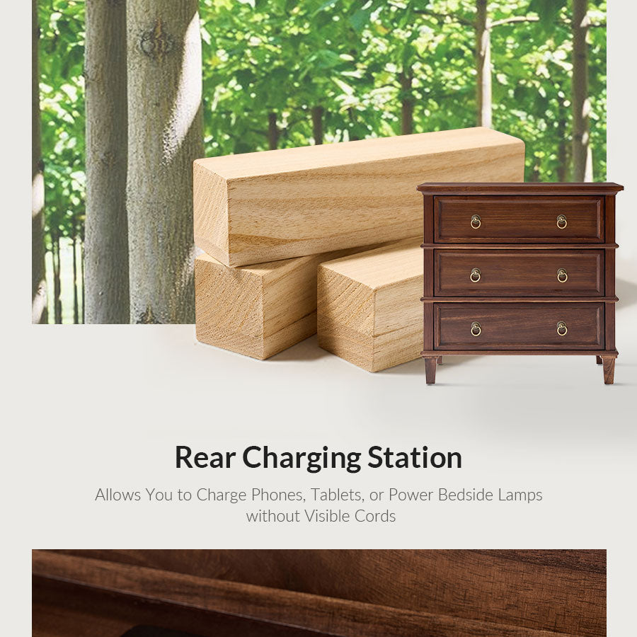 Elevate your bedroom with this versatile 3-drawer nightstand, crafted entirely from solid wood to ensure lasting durability. Its clean lines and classic silhouette make it a seamless fit for different interior styles, from traditional to modern farmhouse. The nightstand features three spacious drawers that provide ample storage for your bedside essentials, helping to keep your space organized. For added convenience, it includes integrated power outlets and USB ports, allowing you to easily charge your devices overnight without the need for additional adapters or cords. This thoughtful feature ensures your electronics are always within reach and ready to use. Assembly is hassle-free, requiring minimal effort to set up. Whether placed beside your bed or used as an accent piece in your living area, this solid wood nightstand combines practicality with style.