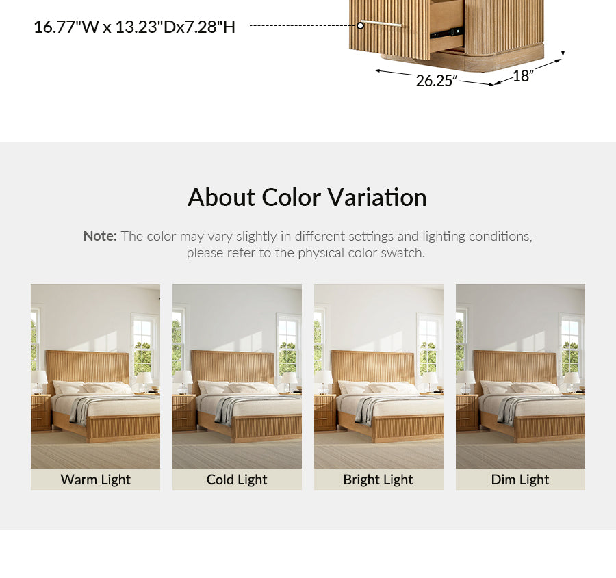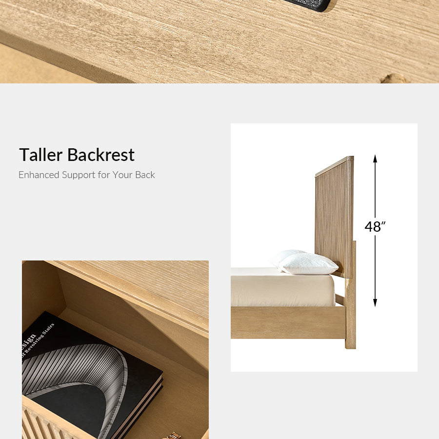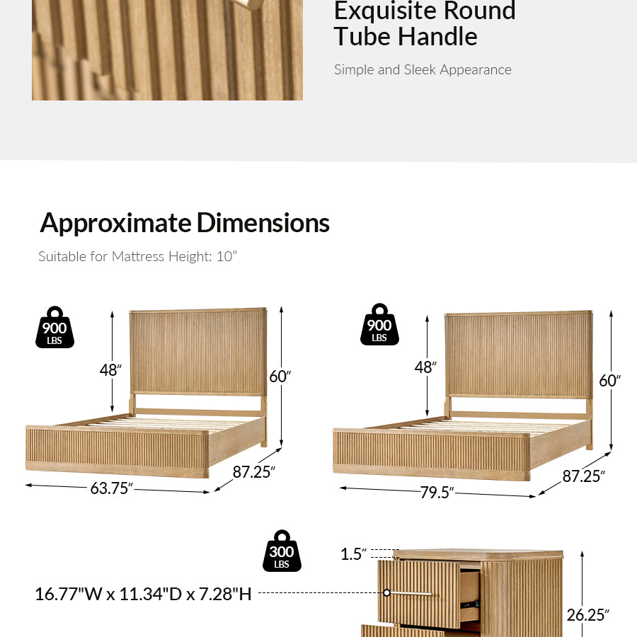 Made from solid poplar wood and MDF, each piece showcases a natural walnut finish with sleek vertical reeding for a warm, structured look that adds subtle character to any room. The King-size bed offers generous space and sturdy support up to 900 lbs, serving as a statement centerpiece for spacious master suites. The Queen-size option, on the other hand, is ideal for urban apartments, guest rooms, or cozy master bedrooms, bringing the same solid comfort in a more compact footprint.