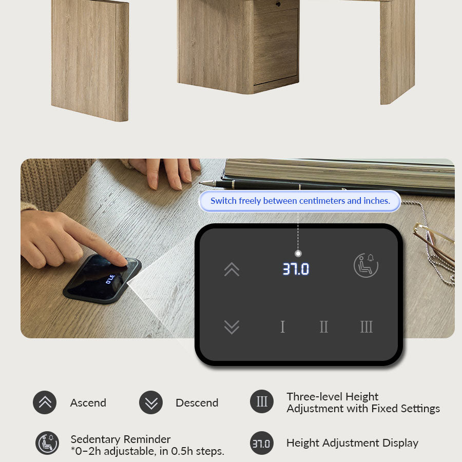 Sedentary Reminder: This office desk features a sedentary reminder that notifies you to take micro-breaks, boosting productivity and wellness. Instructions:Because the size of the product is measured manually, there may be errors.