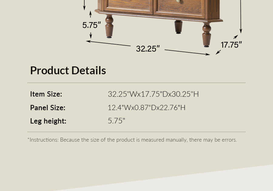 Weight Capacity: 110 lbs Overall Item Weight: 37.15 lbs Item Size: 32.25''W x 17.75''D x 30.25''H Panel Size: 12.4''W x 0.87''D x 22.76''H Leg height: 5.75''H Instructions:Because the size of the product is measured manually, there may be errors.