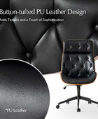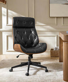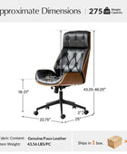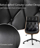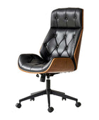 - Product Including: One office chair, assembly required. - Gentle 14-Degree Rocking Motion Designed to promote comfort during long work hours, this office chair features a smooth 14-degree rocking function that encourages subtle movement, easing tension and enhancing relaxation throughout the day. - Solid Bentwood Construction The seat and backrest are crafted from durable solid bentwood, offering graceful curves and a sturdy frame. This natural material provides reliable support while adding a warm, sophisticated touch to any workspace. - Swivel Base with Adjustable Height Equipped with smooth-gliding casters and a pneumatic lift, the chair offers effortless mobility and height adjustment, ensuring ergonomic comfort for a variety of desk setups. - Genuine and Faux Leather Options Available in two elegant upholstery choices: genuine leather for a breathable, luxurious feel, or full faux leather for easy maintenance without compromising style. Both options feature sophisticated design and enduring comfort. - Refined Transitional Style Blending classic curves with clean modern lines, this office chair embodies a transitional aesthetic, perfectly complementing both traditional and contemporary interiors. Ideal for home offices, studies, or executive environments.