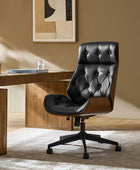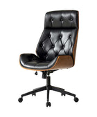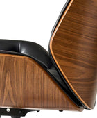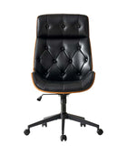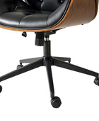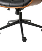 The matte black base contrasts beautifully with the natural wood tones, completing a versatile mid-century modern and transitional aesthetic that fits seamlessly into home offices, professional workspaces, or creative studios. Combining function, comfort, and design, this office chair is a stylish, practical addition for any modern workspace.