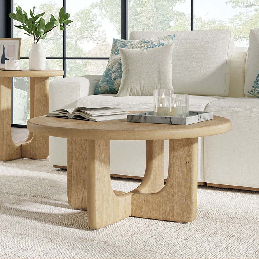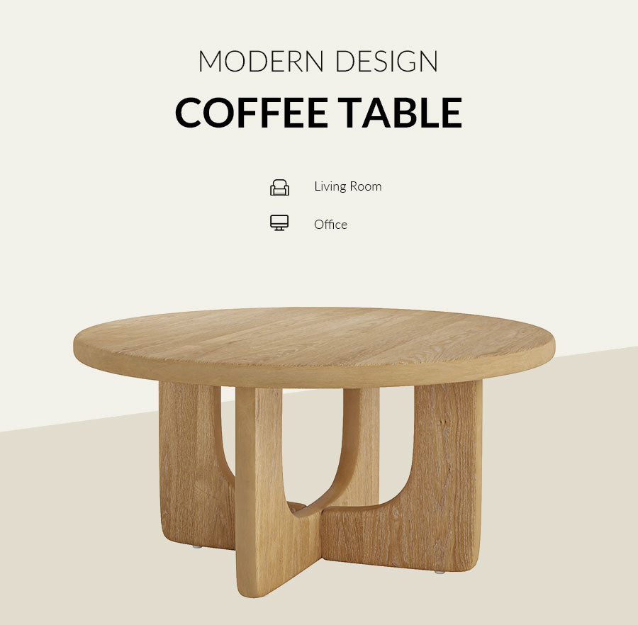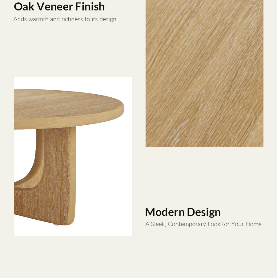 This modern coffee table features a minimalist design with rounded edges, combining style and functionality. Crafted with wood legs and an oak veneer tabletop, it brings natural warmth and durability to a variety of interiors. Its compact yet practical surface is ideal for everyday use, while the soft corners add a contemporary touch and enhanced safety, making it well suited for both large living spaces and small apartments.