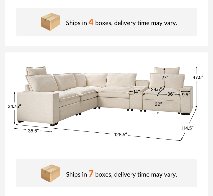 Sofa: 128.5"Wx114.5"Dx47.5"H