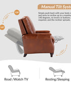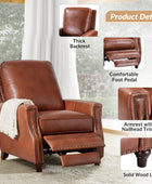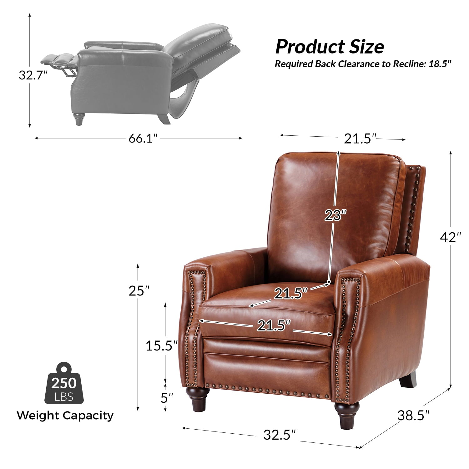 Whether you need to round out your living room look or accent the master suite, this cigar recliner is the perfect spot to unwind. This genuine leather chair exudes luxury and comfort whether upright or reclining. The smooth leather adds sophistication, combining style with relaxation.The recliner chair is made of high-quality cowhide, easy to clean and maintain, you can easily clean with a dry or damp lint-free cloth. Humanization design with comfortable backrest for different using of reading books, watching TV, and sleeping, provide extreme comfort for your neck, back, and lumbar. The recliner can be perfectly matched with any decoration, offers a fashion air of sophistication to your home.