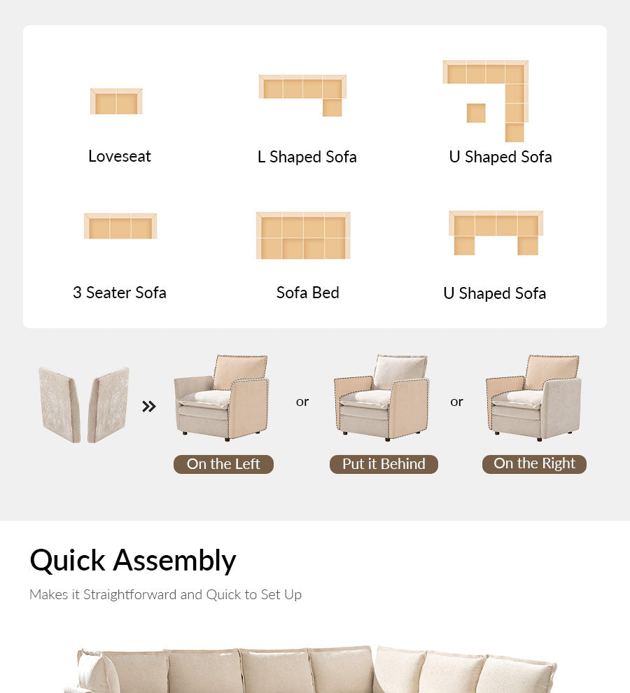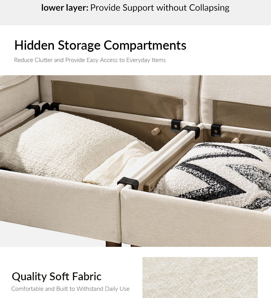 Designed for everyday comfort, its double-layer cushions provide a soft yet supportive feel, while hidden storage compartments under each seat help keep your home neat and organized. The modular design lets you easily rearrange the layout to suit any room or lifestyle, from cozy corners to expansive family spaces.