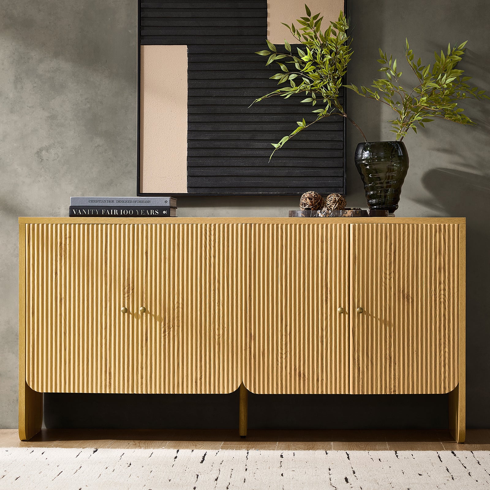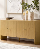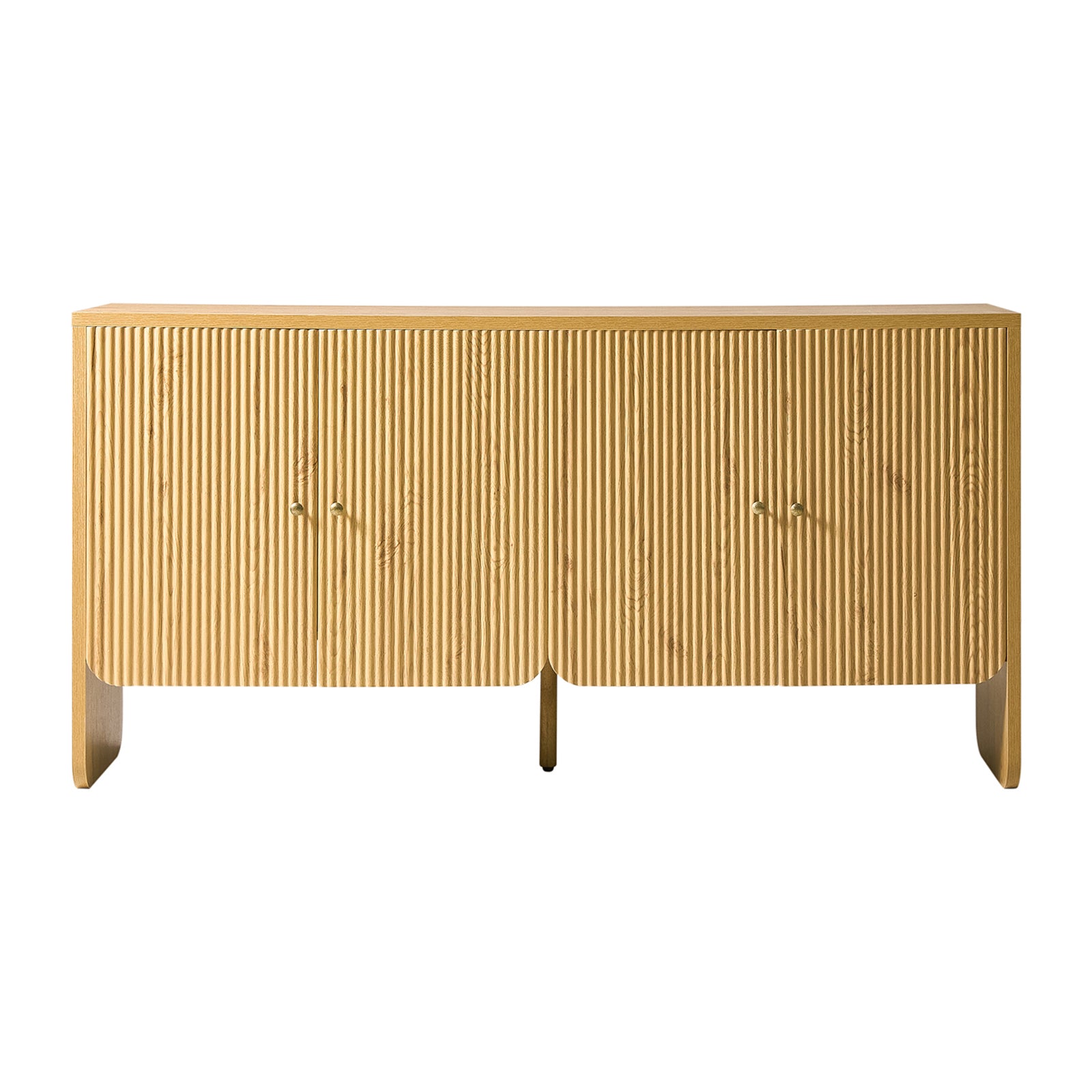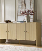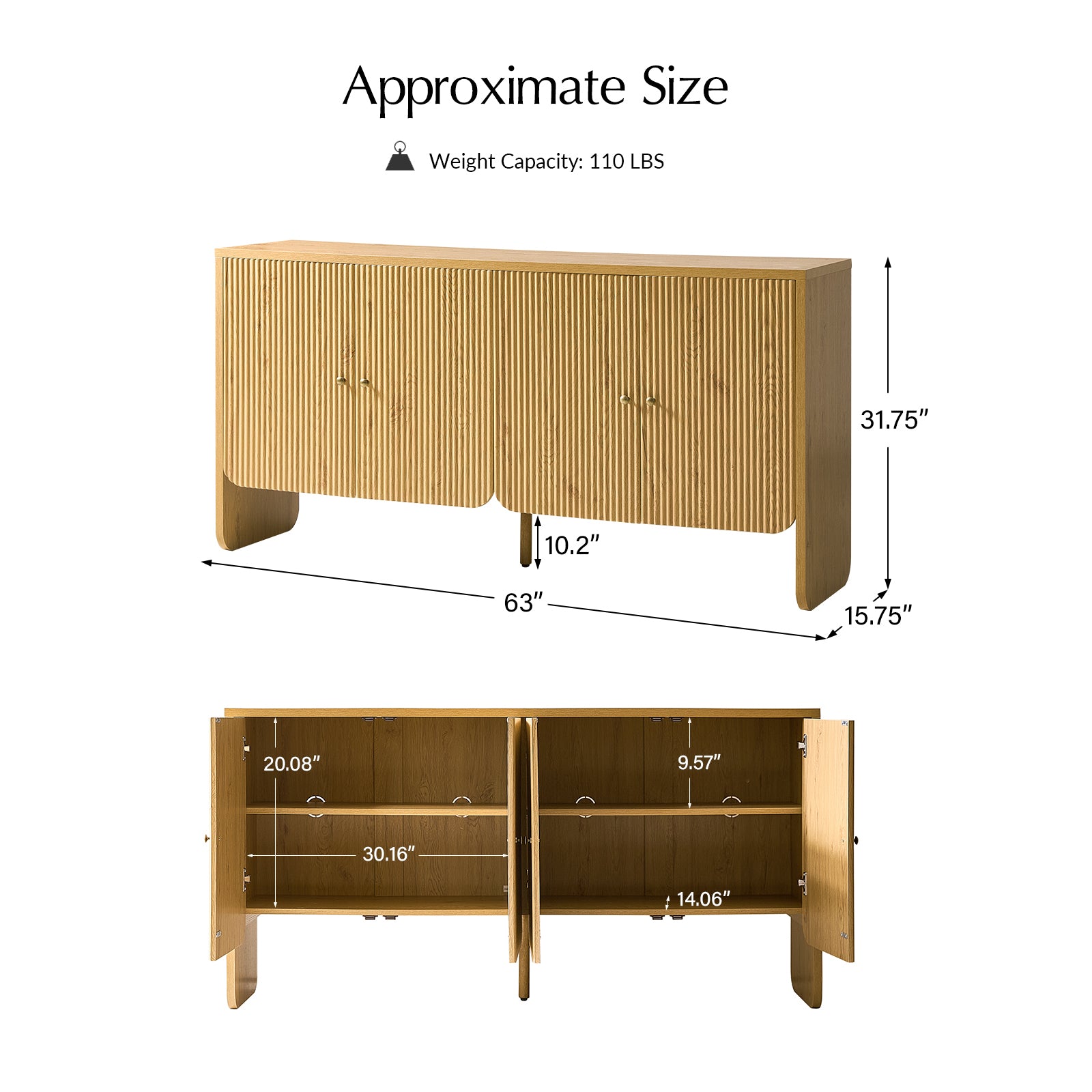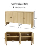 Elevate your home with the modern style four-door sideboard, blending style and practicality. The doors showcase intricate details, including round fluting, vertical stripes, and a subtle wave texture, creating a visually dynamic surface that adds depth and sophistication to your space. Each door is adorned with a sleek circular handle, offering a minimalist yet elegant touch. Made from durable thermoformed panels, the cabinet ensures quality and durability. Inside, adjustable shelves provide customizable storage solutions, allowing you to organize dishes, linens, or household essentials effortlessly. A built-in cable management hole discreetly routes wires, making it a choice for media storage or electronic devices. Designed to complement modern interiors, this contemporary-style sideboard combines functional storage with artistic elements, making it a perfect addition to dining rooms, living spaces, or entryways.