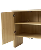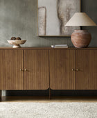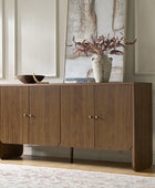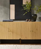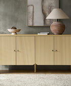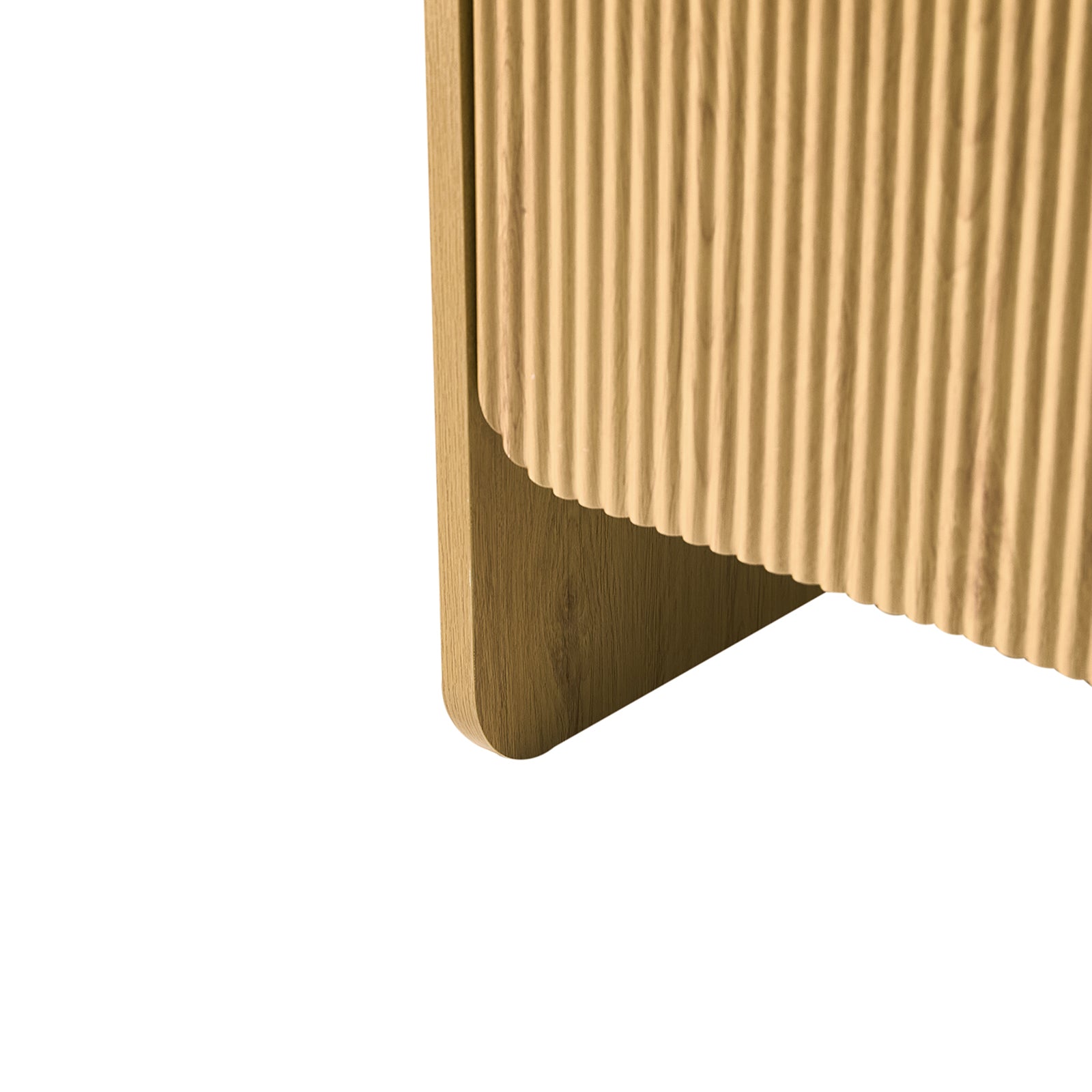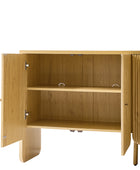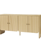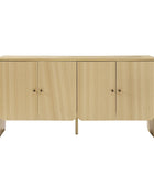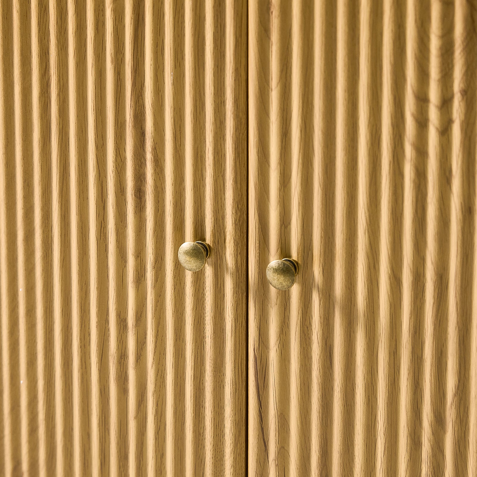 Elevate your home with the modern style four-door sideboard, blending style and practicality. The doors showcase intricate details, including round fluting, vertical stripes, and a subtle wave texture, creating a visually dynamic surface that adds depth and sophistication to your space. Each door is adorned with a sleek circular handle, offering a minimalist yet elegant touch. Made from durable thermoformed panels, the cabinet ensures quality and durability. Inside, adjustable shelves provide customizable storage solutions, allowing you to organize dishes, linens, or household essentials effortlessly. A built-in cable management hole discreetly routes wires, making it a choice for media storage or electronic devices. Designed to complement modern interiors, this contemporary-style sideboard combines functional storage with artistic elements, making it a perfect addition to dining rooms, living spaces, or entryways.
