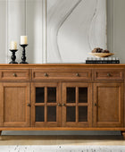 This traditional sideboard adds a different kind of style to your home with an elegant and luxurious design that matches any color scheme and decorating style. This sideboard has a spacious table top for easy placement of decorative items or everyday essentials. It has a large storage space, making your room neat and organized with this sideboard. Made of manufactured wood, this storage sideboard is very solid for everyday use. 5 solid wood legs enhance the stability of the table and the elevated height prevents moisture and damage to the bottom of the storage shelf. The sideboard can be used not only as a buffet, but also as a storage cabinet for books, shoes, bathroom supplies and even as home decor. It can be placed in the kitchen, living room, hallway or entryway.