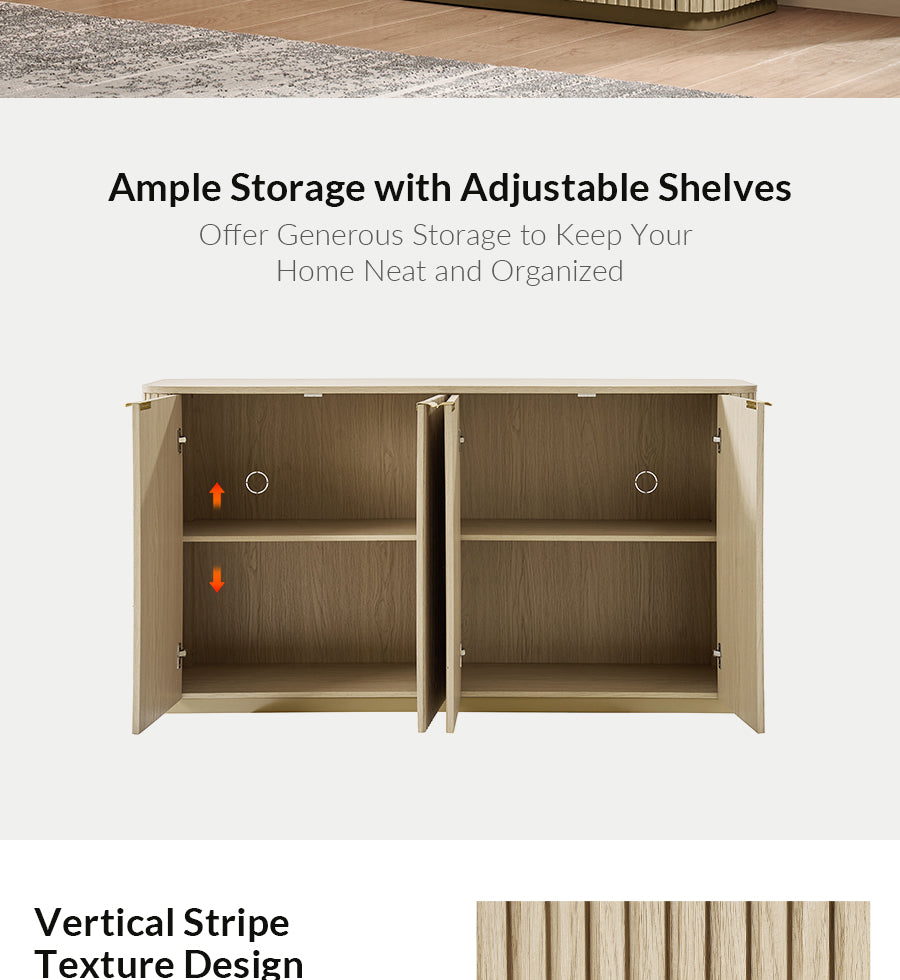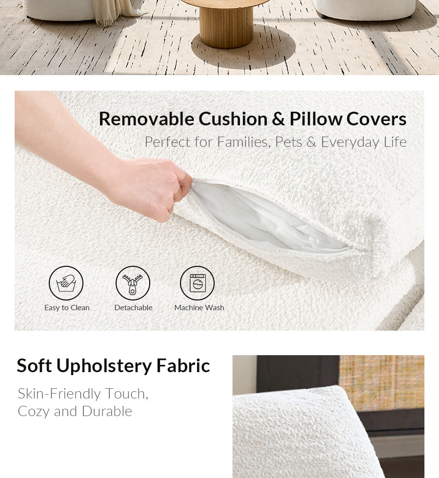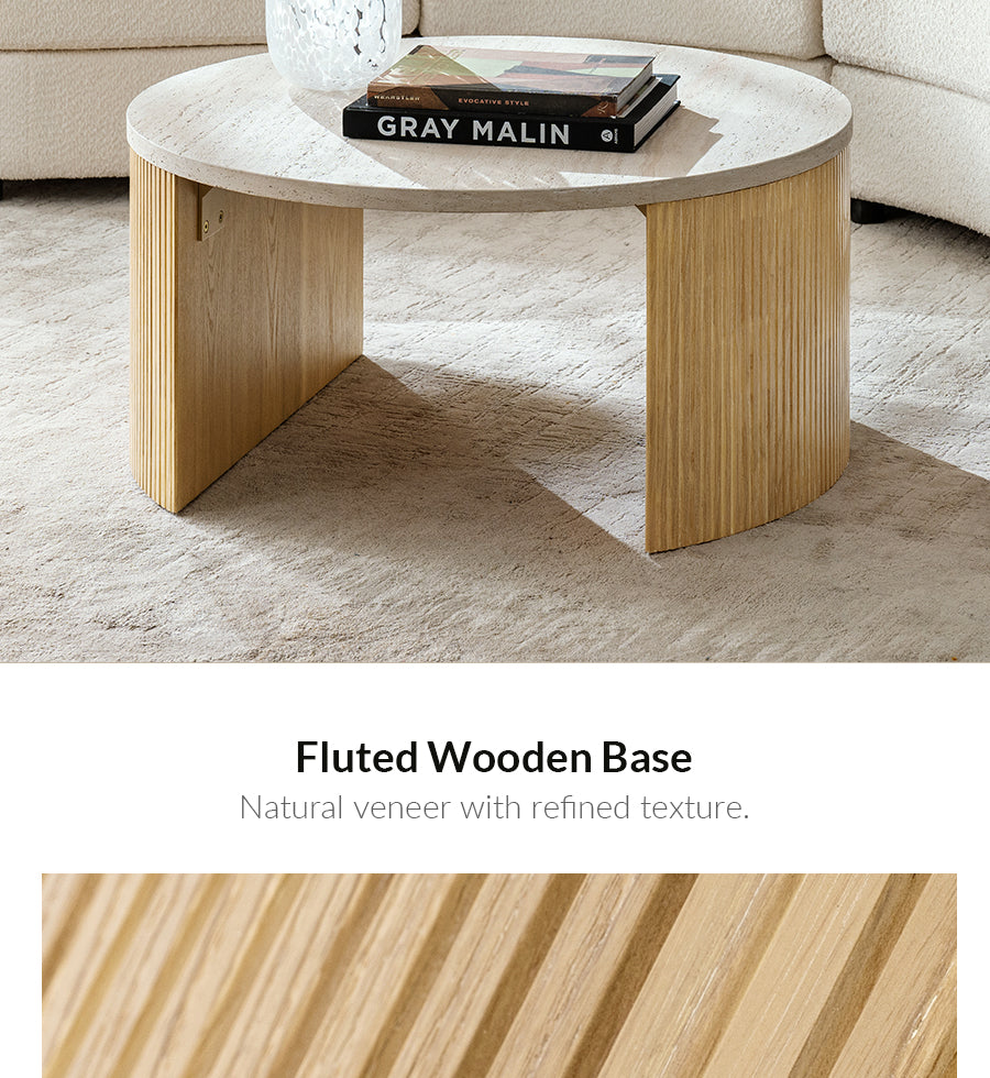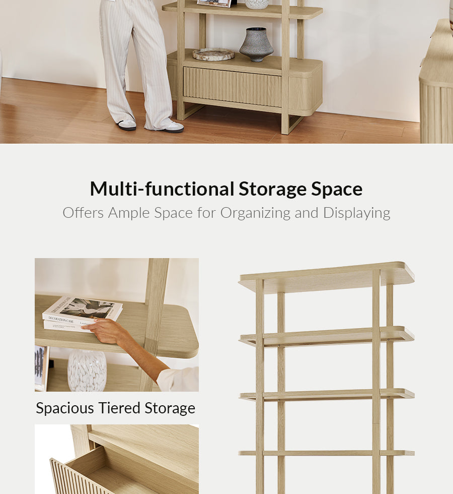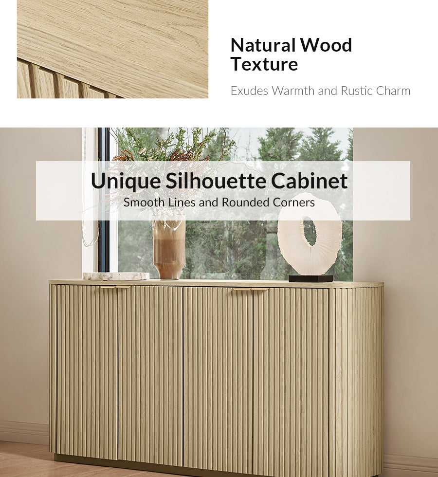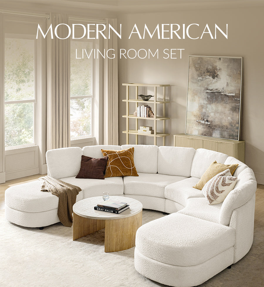 This modern living room collection is designed for flexible layouts and a unified aesthetic across every piece. The modular sofa offers multiple configurations to fit different spaces, with soft cushioning and sculpted curves that blend comfort with a refined contemporary look. The minimalist coffee table features natural stone and wood textures, complementing the sofa’s rounded silhouettes. A clean-lined bookshelf with open shelving and a closed base provides layered storage and display options, while the coordinating sideboard adds generous concealed storage with elegant vertical textures and smooth curves. Together, the collection combines modern forms, natural materials, and thoughtful functionality to create a cohesive and adaptable living space.