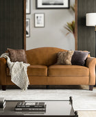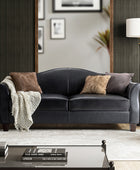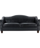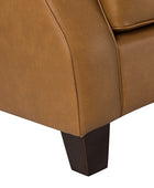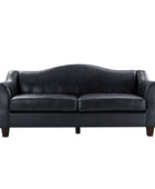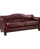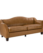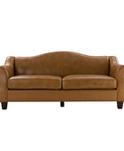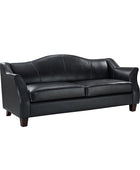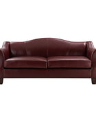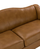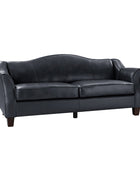 Introducing an exquisite sofa that exudes sophistication and comfort. Crafted with genuine leather upholstery, it epitomizes luxury and durability. The elegant curved shape of its arms and back showcases a timeless design, adding a touch of elegance to any living space. With a high back design, it provides excellent neck support, ensuring optimal comfort during relaxation. The sofa stands firmly on solid tapered wood legs, enhancing its stability and lending a touch of natural beauty. Perfect for lounging and entertaining, this remarkable piece combines superior craftsmanship with refined aesthetics, making it an irresistible addition to your home.