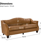 Weight Capacity: 750 lbs Sofa Weight: 114 lbs Sofa Size: 78.75''W x 32.87''D x 36.22''H Seat Size: 66.15''W x 23''D x 20.5''H Instructions:Because the size of the product is measured manually, there may be errors.