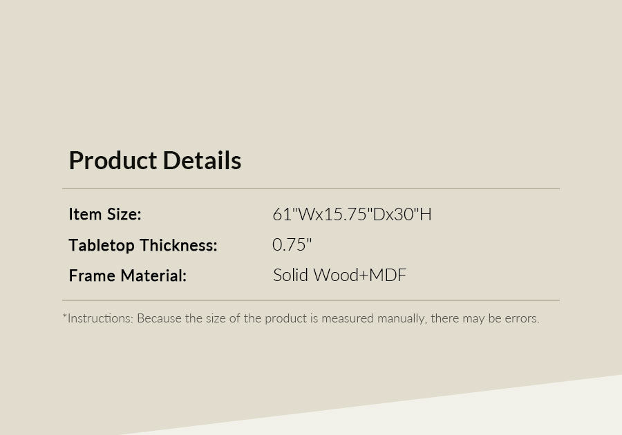 Item Size: 61"W x 15.75"D x 30"H