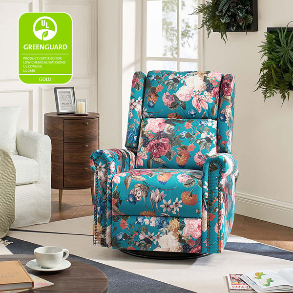 The swivel rocker glider recliner combines style and comfort with a handsome transitional design. Choose a supple, genuine leather in which the nursery chair comes with decorative brass tacks. The...
