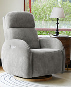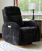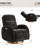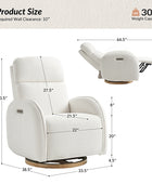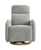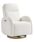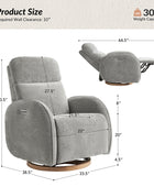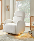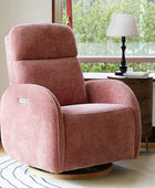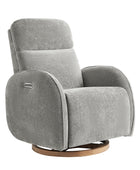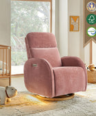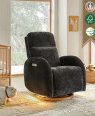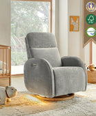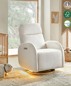 - Experience unmatched freedom of movement with this chair's 240-degree swivel capability, perfect for any living space. Whether you're unwinding in front of the TV, engrossed in a book, or simply enjoying a moment of relaxation, this chair delivers the flexibility you desire. - Indulge in the gentle rocking and gliding motion that effortlessly lulls you into a state of relaxation, ideal for soothing both you and your baby. With smooth and seamless movement, this chair offers a calming sensation that promotes deep relaxation and unwinding. - Easily customize your comfort with just a touch of a button, allowing you to adjust the headrest and lumbar support to your desired position. Experience tailored comfort and support for your neck and back, ensuring optimal relaxation and relief at your fingertips. - Benefit from the convenience of the motion-activated nightlight, offering a soft and gentle glow ideal for illuminating the nursery without disrupting your little one's sleep. Whether you're soothing your baby to sleep or require subtle illumination in the dark, this chair's night light provides the perfect solution. - Stay effortlessly connected with the built-in USB and Type C charging port, enabling convenient charging of your devices. Keep your essentials powered up and close at hand while you rock or feed your baby, ensuring uninterrupted connectivity whenever you need it.