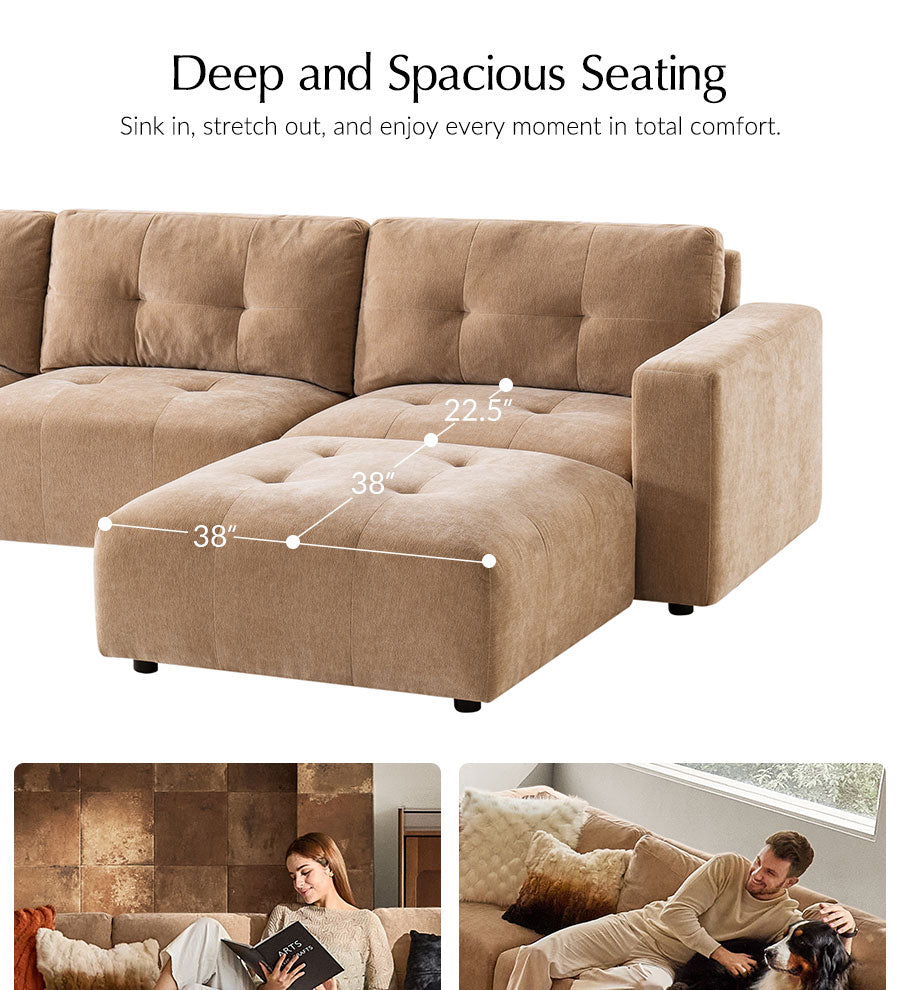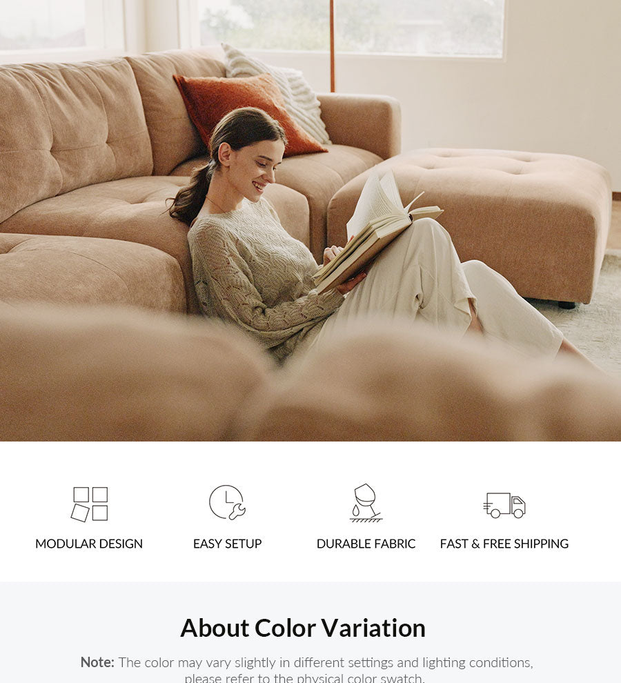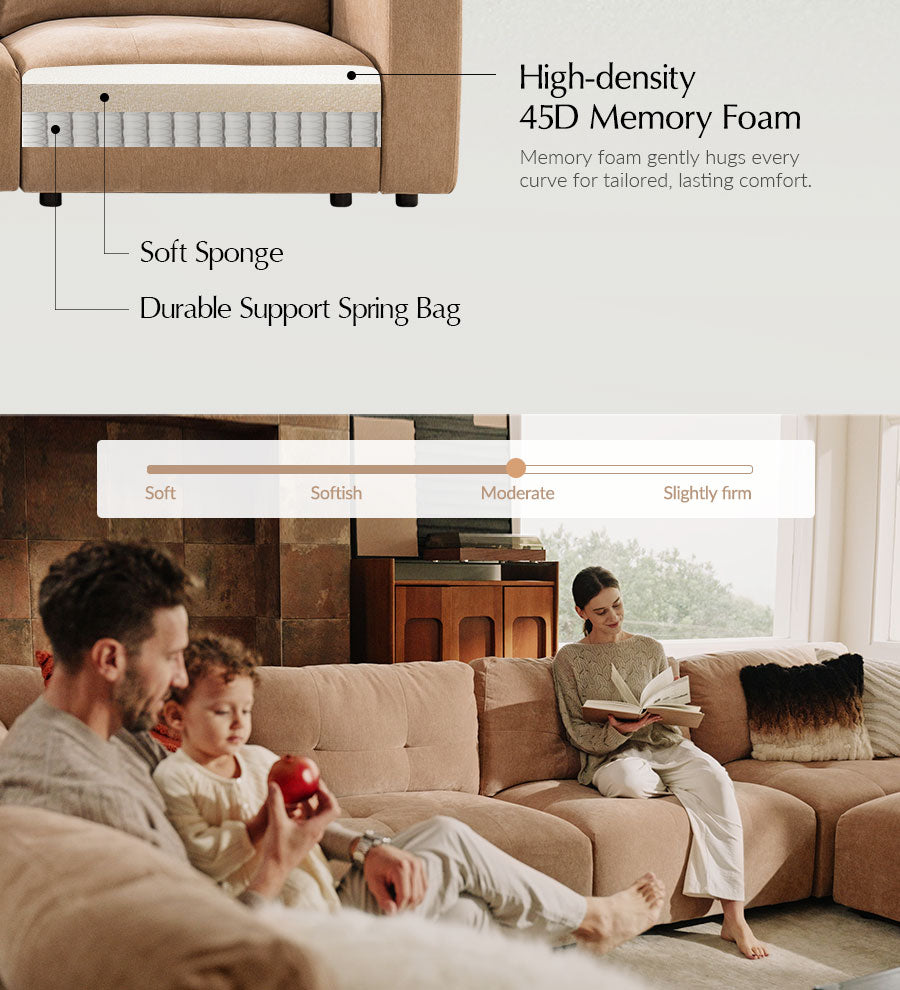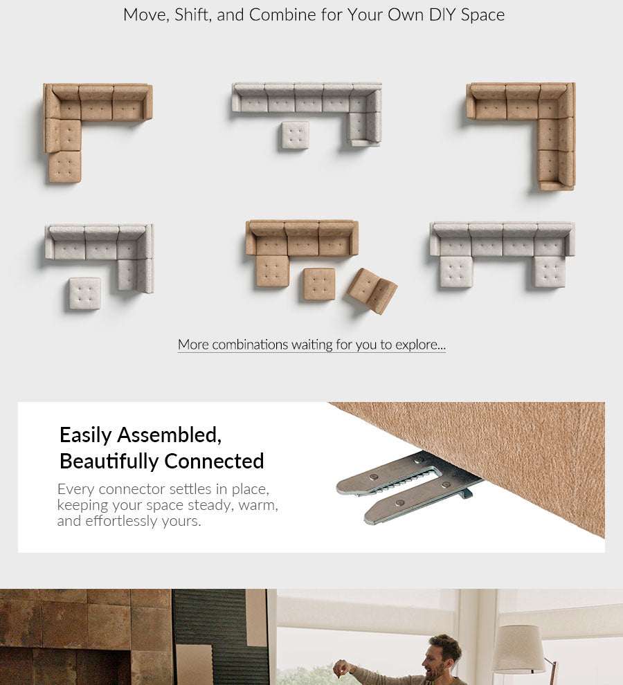 A sofa that adapts to your life — in comfort, in style, in every moment.Relax. Rearrange. Repeat.Designed for modern living, this modular sectional adapts to your life and space. Sink into deep, memory-foam comfort that feels like a hug, while the covers make every day easy. Perfect for families, pets, and long movie nights.