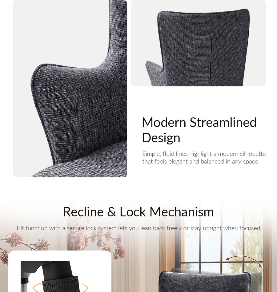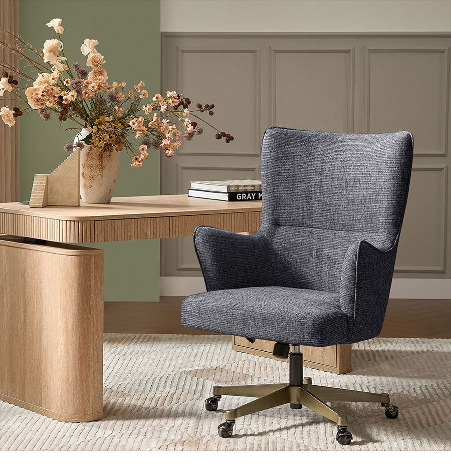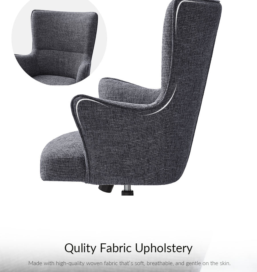 Elevate your workspace or reading nook with the Ricardo Modern Wingback Office Chair, designed to combine mid-century modern aesthetics with everyday comfort. Its sculpted wingback silhouette and wraparound armrests provide full back, shoulder, and lumbar support, promoting better posture during long hours of work or study. Upholstered in soft, breathable woven fabric, this chair offers a warm, textured feel that is both comfortable and stylish, seamlessly blending into modern, contemporary, or transitional interiors.