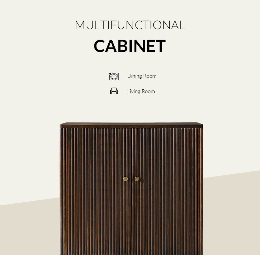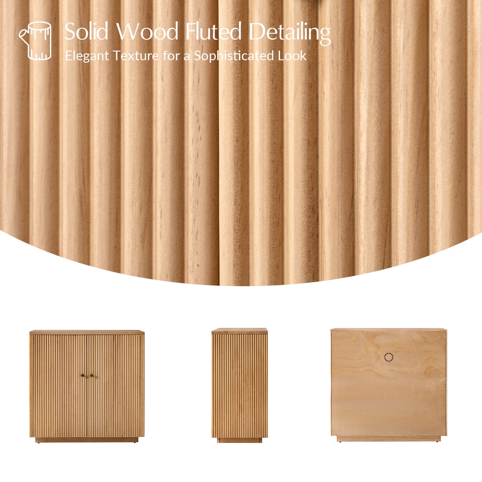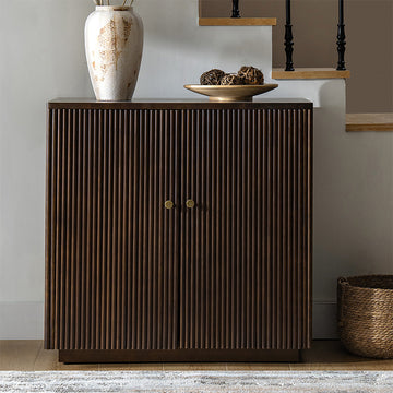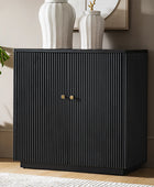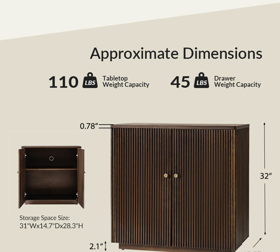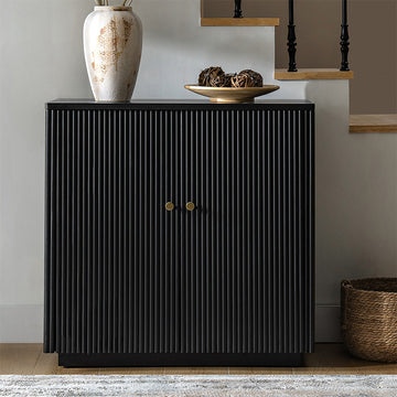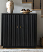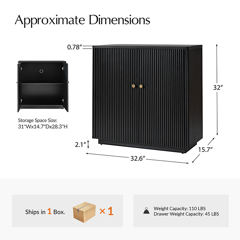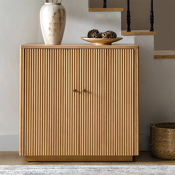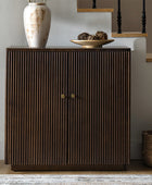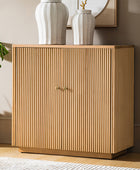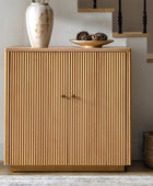 Modern Fluted Solid Wood 32" Tall 2 Door Accent Cabinet with Cable Management & Adjustable Shelf