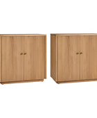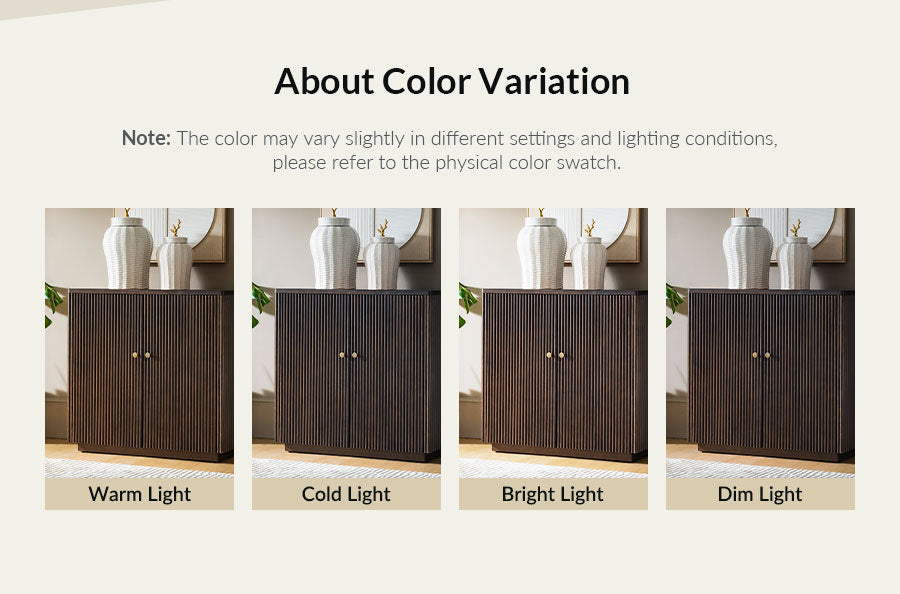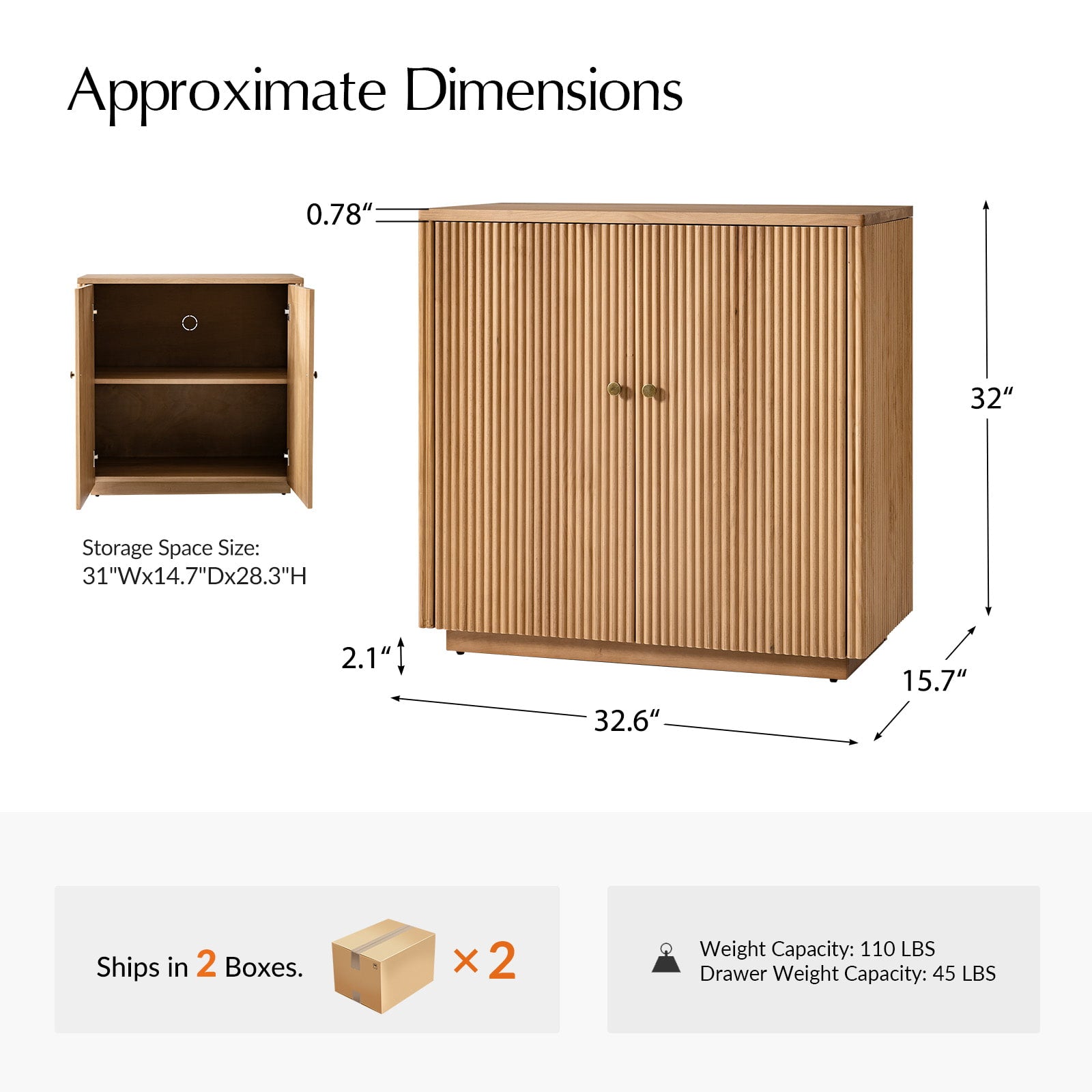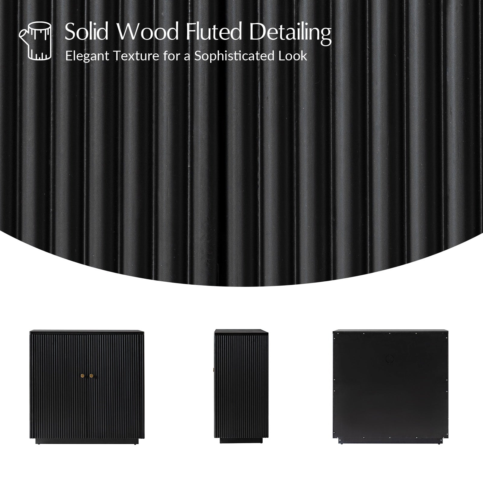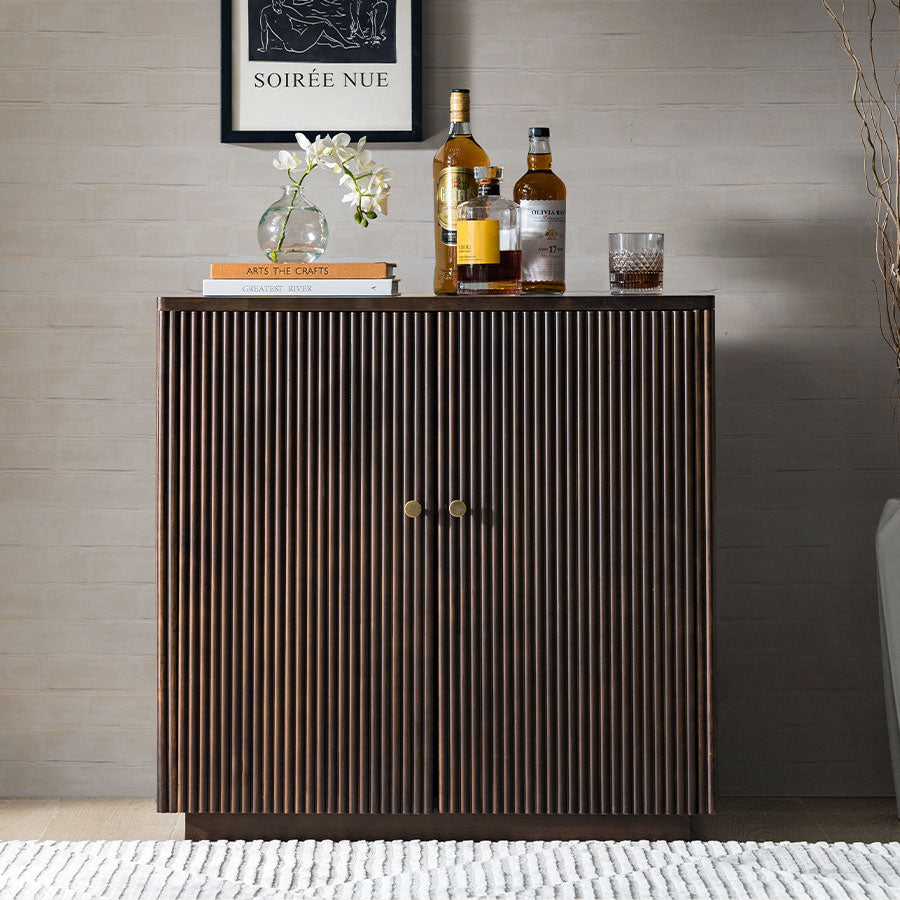 Modern Fluted Solid Wood 32" Tall 2 Door Accent Cabinet with Cable Management & Adjustable Shelf