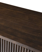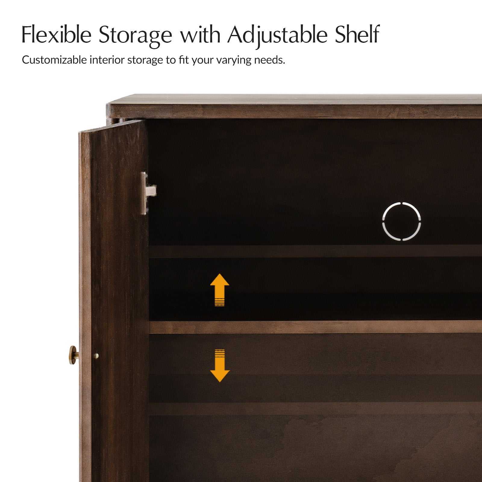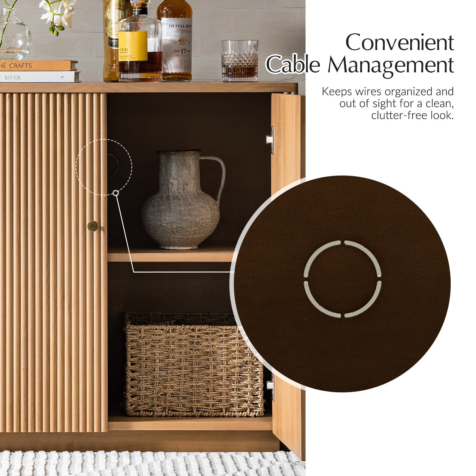 Add both function and style to your space with this solid pine cabinet. Thoughtfully designed with built-in cable management, it keeps cords organized and out of sight for a clean, modern look. Inside, an adjustable shelf offers flexible storage to accommodate your changing needs. The cabinet door and side panels showcase solid wood with round fluting details, bringing texture and craftsmanship to the piece. Made entirely from natural pine wood, this cabinet offers lasting durability and a warm, organic feel, perfect for living rooms, bedrooms, or offices seeking a blend of utility and timeless design.