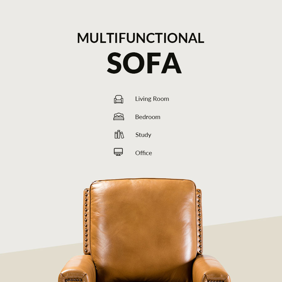 Whether you need to round out your living room look or accent the master suite, this cigar recliner is the perfect spot to unwind. This genuine leather chair exudes luxury and comfort whether upright or reclining. The smooth leather adds sophistication, combining style with relaxation.The recliner chair is made of high-quality cowhide, easy to clean and maintain, you can easily clean with a dry or damp lint-free cloth. Humanization design with comfortable backrest for different using of reading books, watching TV, and sleeping, provide extreme comfort for your neck, back, and lumbar. The recliner can be perfectly matched with any decoration, offers a fashion air of sophistication to your home.