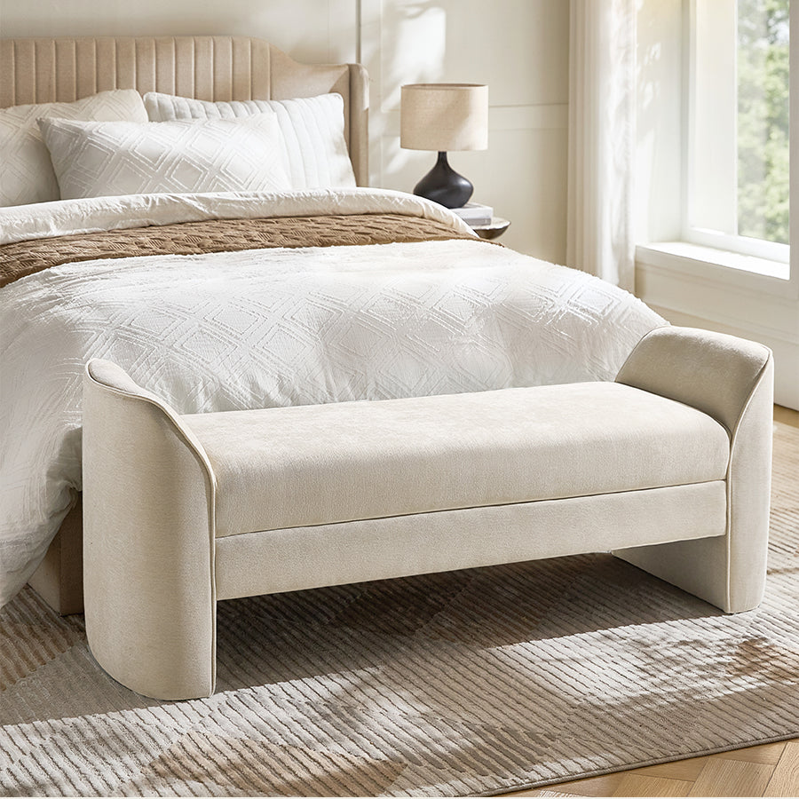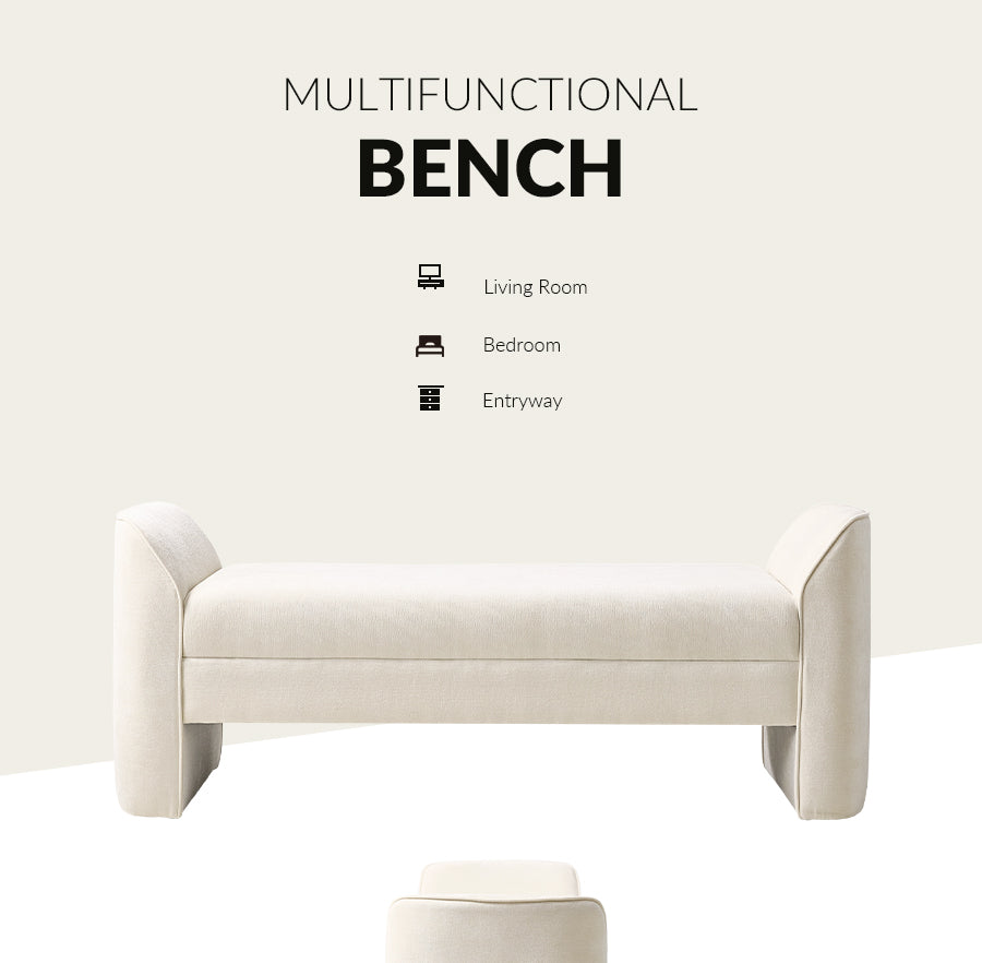 This modern-style bench is a perfect blend of simplicity and elegance. Designed with sleek, streamlined curves, its minimalist aesthetic makes it an ideal addition to any contemporary living space. The bench features a luxurious chenille fabric, known for its soft texture and rich visual appeal, adding both comfort and style to your home. Beneath the surface, the seat is filled with a generous amount of foam, ensuring optimal comfort and support. Whether you're using it for seating or as an accent piece, it offers a cozy, yet firm sitting experience. The bench's edges are finished with a sophisticated piping technique, enhancing its visual appeal while maintaining durability. Additionally, this piece is designed for easy assembly, with a simple setup process that makes it convenient to bring into your home without hassle. Its versatile design and high-quality materials make it a practical yet stylish choice for any room. Whether placed in a hallway, living room, or bedroom, this bench adds a touch of modern elegance to your space.