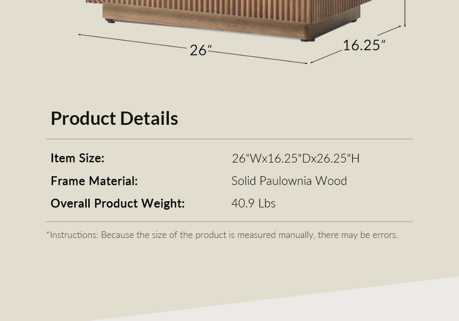 Tabletop Weight Capacity: 100 lbs Drawer Weight Capacity: 15 lbs Overall Item Weight: 20.95 lbs Item Size: 26''W x 16.25''D x 26.25''H Instructions:Because the size of the product is measured manually, there may be errors.