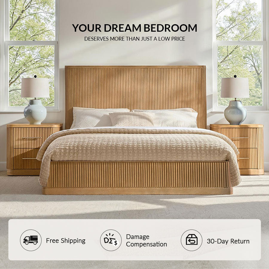 Bring refined texture and natural warmth to your bedroom with the Fluted Solid Wood Platform Bed by HULALA HOME.Designed for those who appreciate craftsmanship and calm spaces, this bed blends modern simplicity with timeless comfort, making it a perfect foundation for cozy family homes and stylish retreats alike.