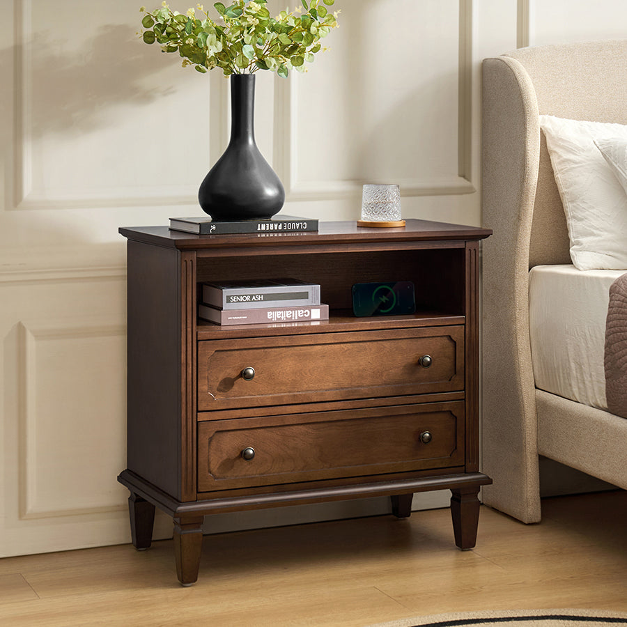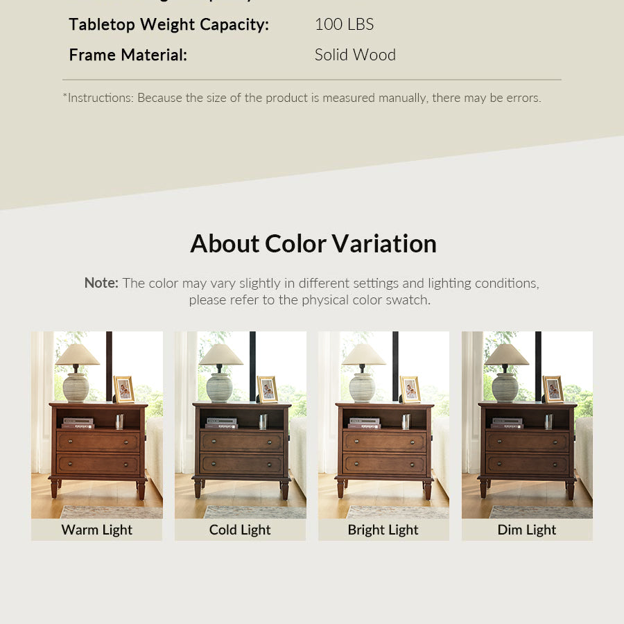 This end table creates a more welcoming and elegant living space. Made of solid and manufactured wood, this end table is sturdy and durable for long-term use. It has 2 drawers of storage space, spacious enough to help you organize your room and meet different storage needs. You can place frequently used items on the tabletop, such as alarm clocks, cell phones, magazines, etc., allowing you to easily reach for items at any time. End table cleverly organizes and conceals CPAP/BiPAP equipment and supplies. The back of the end table comes with an outlet and space to hide wires, so you can easily plug in wires to connect to power. This end table blends seamlessly into your bedroom, living room, study, or even office. It adds harmony to your interior style.