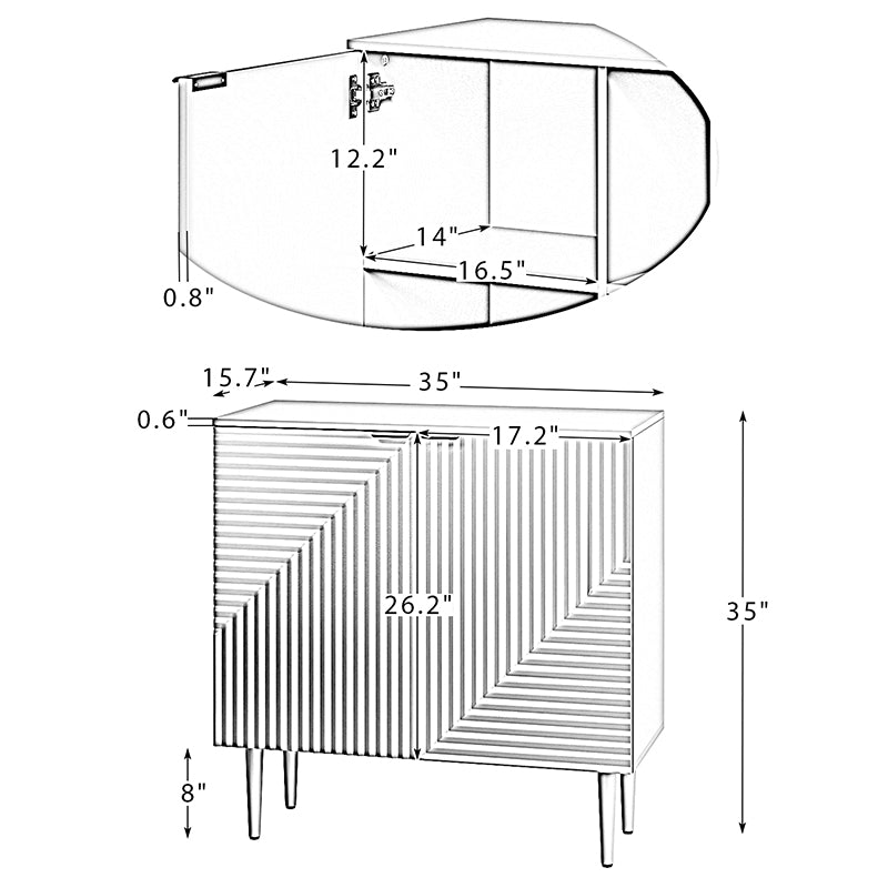 This cabinet comes with a linear groove design and novel colors that are compatible with a variety of living styles and home decor, adding a modern and elegant touch that highlights the beauty of your house. The water and the stain-resistant surface is easy to clean. The textured design on the cabinet doors attracts proper attention. Two spacious storage compartments make this piece the perfect solution for anything you want to put in it. Add extra storage space to your living space with this cabinet.