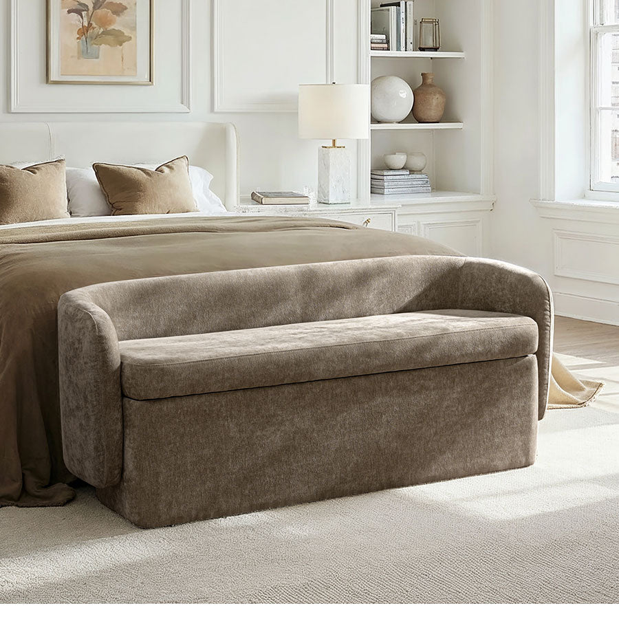 Modern Chenille Storage Bench with Wraparound Backres