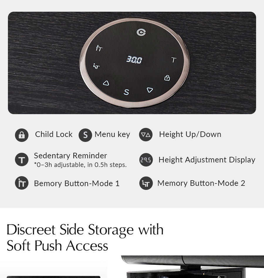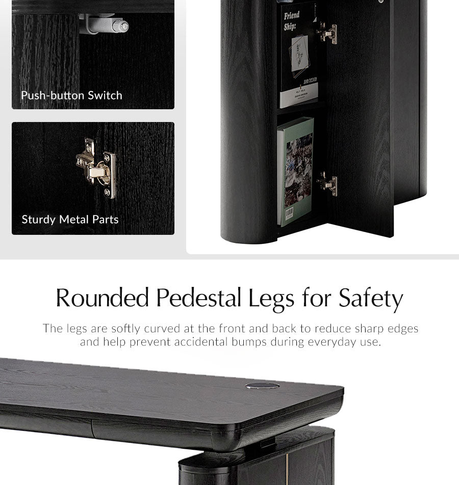 The integrated electric height adjustment system allows you to transition smoothly between sitting and standing with the touch of a button. Powered by a quiet motor, the lift mechanism operates smoothly and discreetly, supporting healthier work habits without disrupting your workflow.
