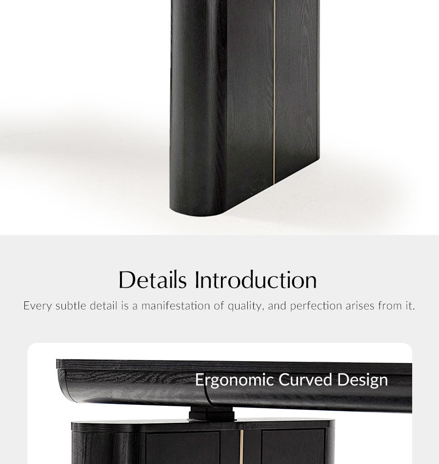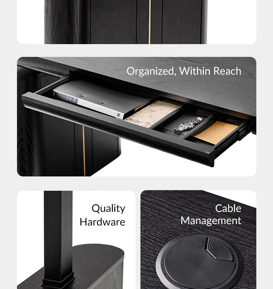 A concealed drawer beneath the desktop provides organized storage for everyday essentials. Thoughtfully designed internal dividers keep items neatly arranged, while soft-close drawer slides ensure quiet and refined operation.