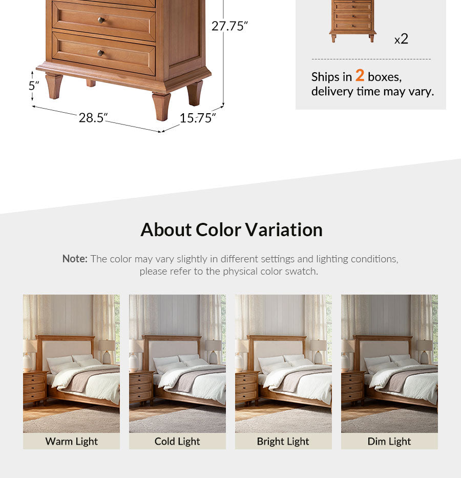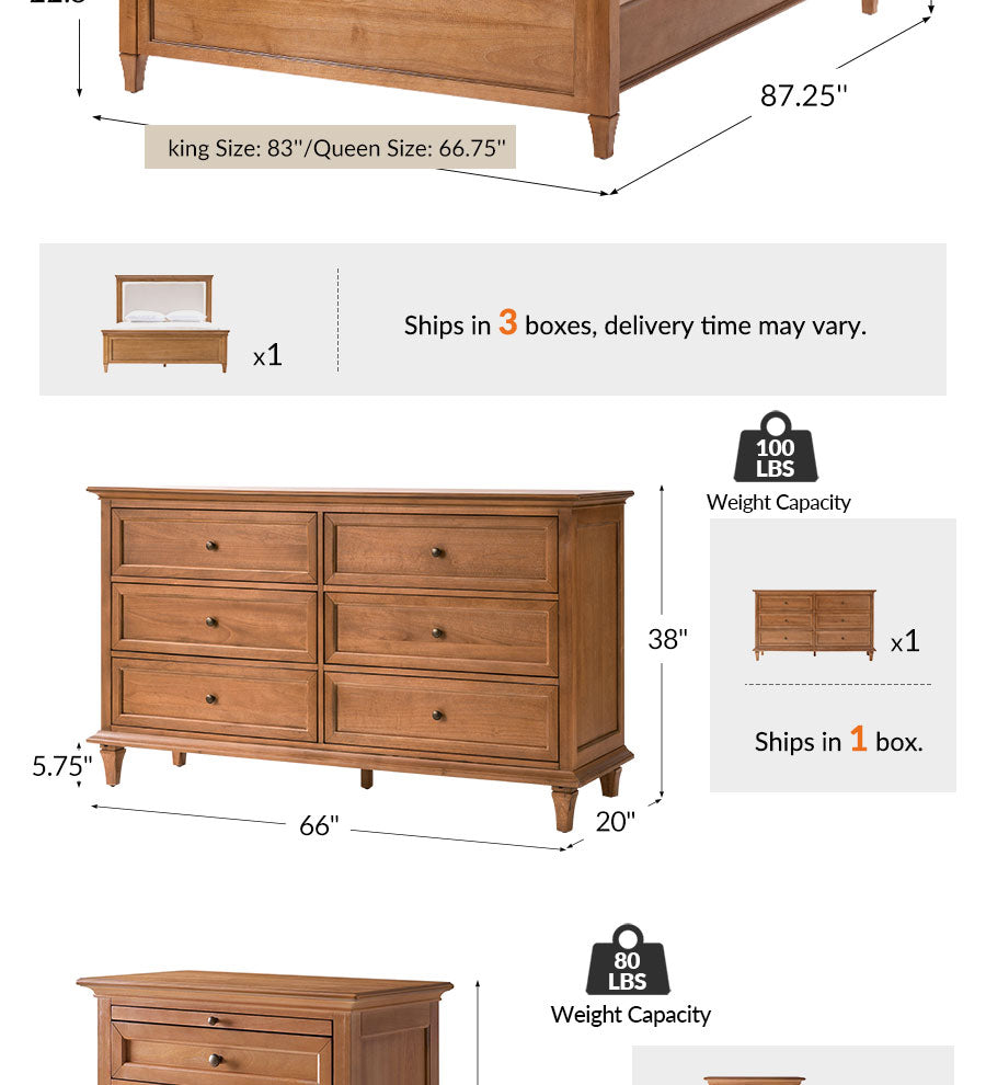Simplified Setup: The dresser and nightstands arrive fully preassembled — simply attach the legs, and they’re ready for immediate use — allowing you to enjoy your new bedroom with less effort.