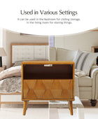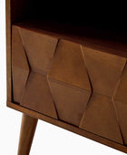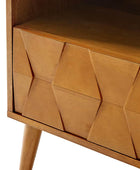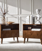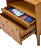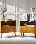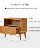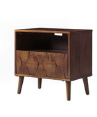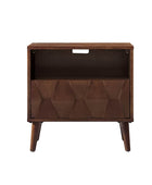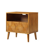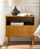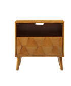 Elevate your bedroom with the mid-century modern nightstand, seamlessly blending style and functionality. Its hexagonal patterned door panel adds a sophisticated touch to its sleek silhouette, making it a perfect addition to any contemporary or retro-inspired space. The spacious drawer conceals a hidden velvet-lined compartment, offering a discreet storage solution for your valuables. The rear charging station, equipped with USB and Type-C ports, ensures your devices stay powered without the hassle of tangled cords. Featuring an open cubby with a rear cable hole, the nightstand allows you to neatly store and charge electronics without occupying the tabletop, keeping your space organized and clutter-free. The flared legs provide a stylish nod to mid-century design while offering sturdy support. Adjustable feet ensure the nightstand remains stable on uneven surfaces, adding a practical touch to its elegant design. Crafted for convenience and vintage appeal, this nightstand is a blend of aesthetics and utility for modern living.