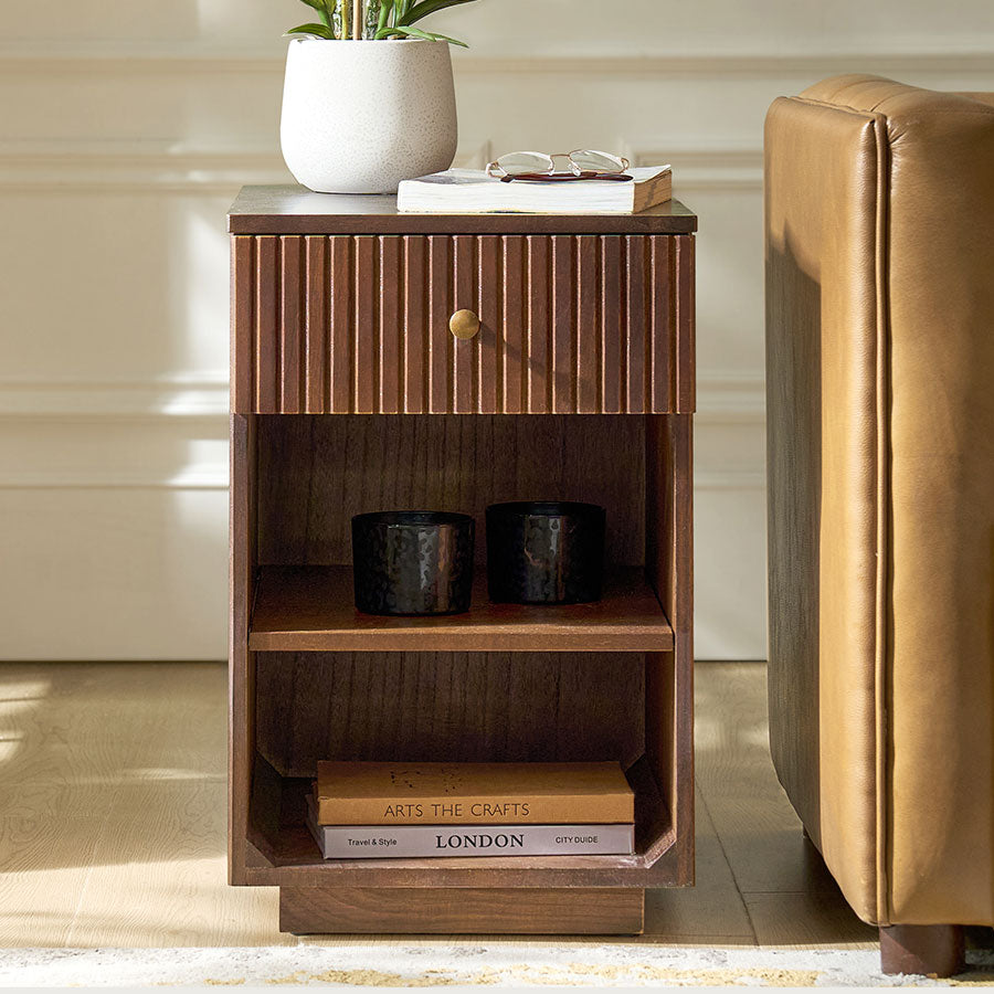 Reeded Modern End Table with Adjustable Shelf & USB Ports(Optional Types)