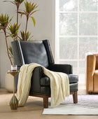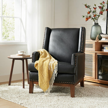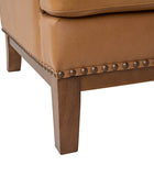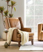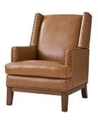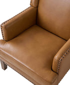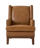 Introducing a luxurious full-grain leather armchair, a masterpiece of comfort and style. Crafted with precision, its solid wood frame ensures durability, complemented by sturdy turned wood legs for stability. The mid-century modern style exudes sophistication, while elegant nailhead trims add a touch of timeless charm. Sink into ultimate comfort with the removable seat cushion, filled with plush foam and supported by sinuous springs for an ergonomic seating experience. The removable seat cushion is also easy to maintain. This armchair seamlessly combines form and function, offering a blend of elegance and practicality. Elevate your space with this exquisite piece that marries classic design with contemporary comfort, making it a standout addition to any room.