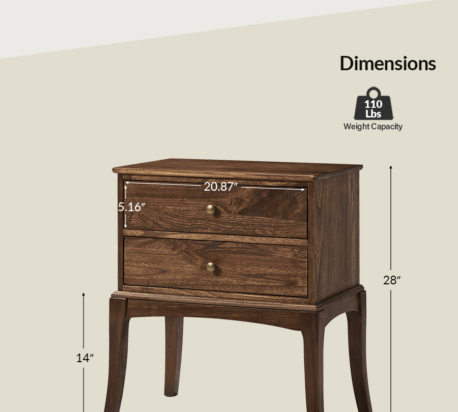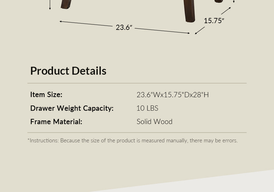 Weight Capacity: 110 lbs Item Size: 23.6''W x 15.75''D x 28''H Drawer Interior Size (inch) :
