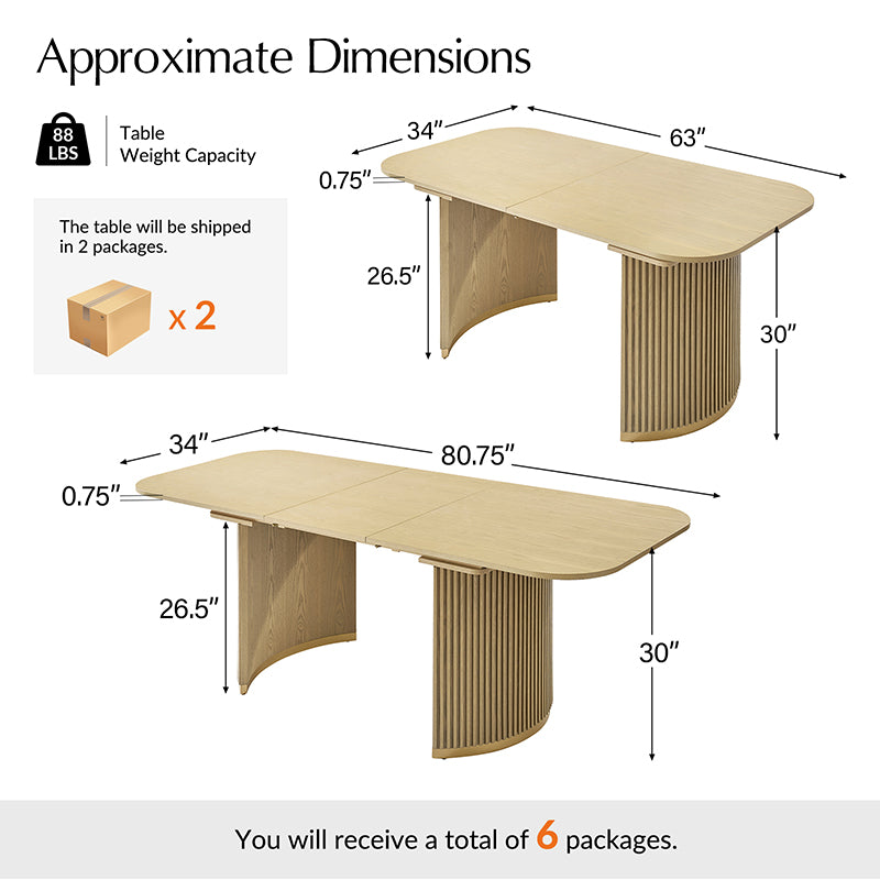 Product Details Assembly Required: Yes Table Weight Capacity: 88 lbs Chair Weight Capacity: 275 lbs Weight and Dimensions Dining Table Dimensions: 80.75" x 34" x 30" Chair Dimensions: 21.5" x 22.75" x 30.75"
